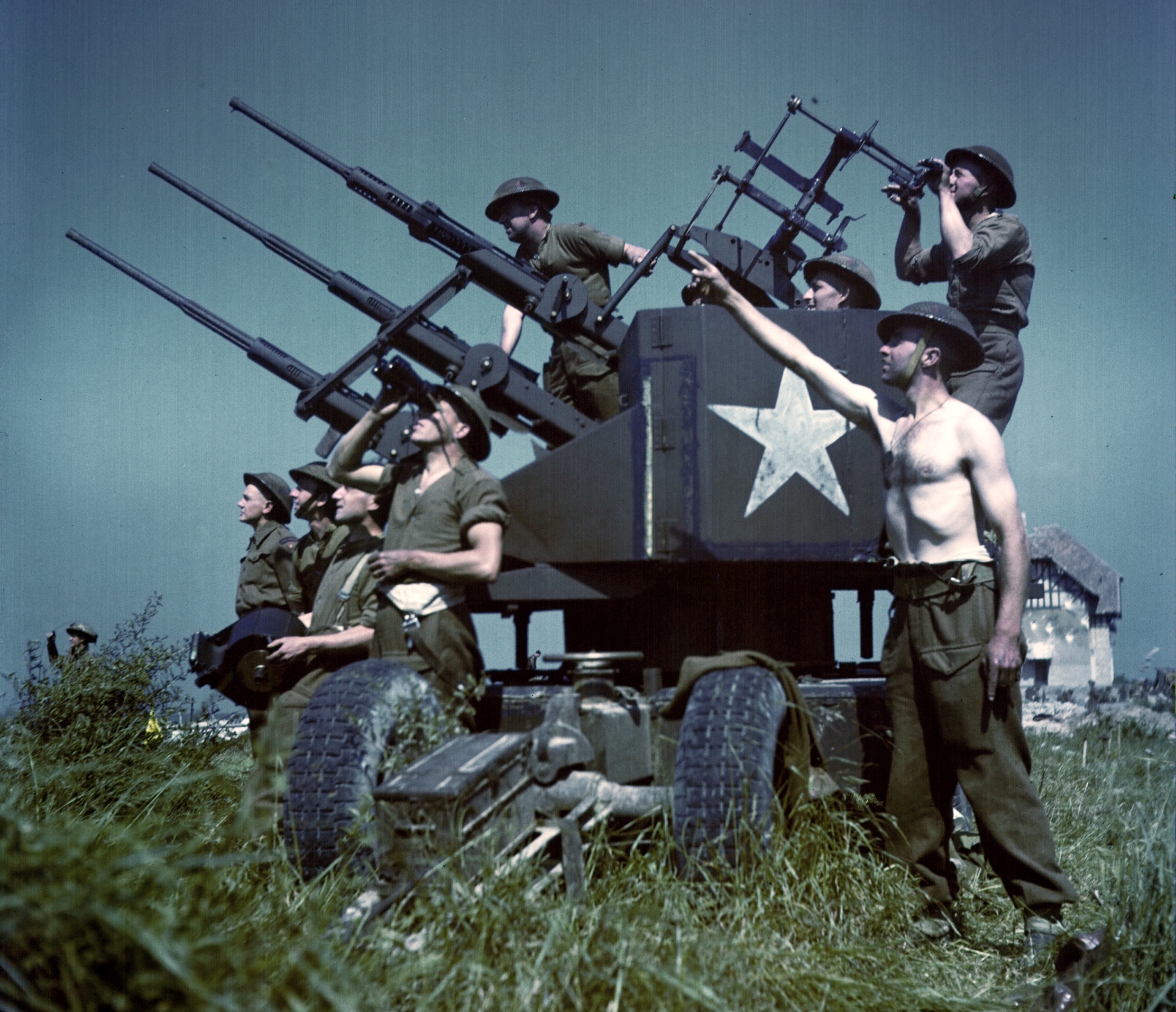 Canadian 20-mm Quadruple Polsten triple-barreled Anti-Aircraft Guns in Normandy, June, 1944.