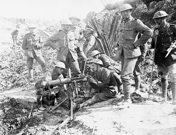 Canadian soldiers testing a Vickers machine gun. September, 1916.