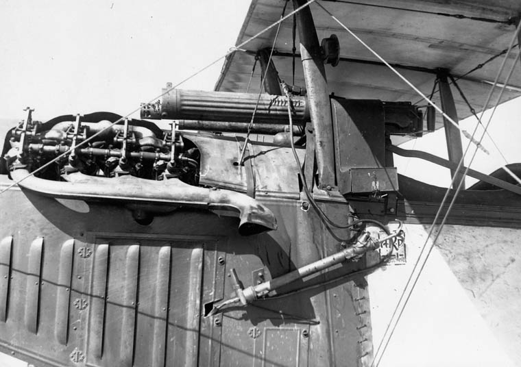RFC Canada. C.C. Gear (Synchronized Machine Guns) on Curtiss JN-4. School of Aerial Gunnery, Beamsville Camp, Ontario, 1918.