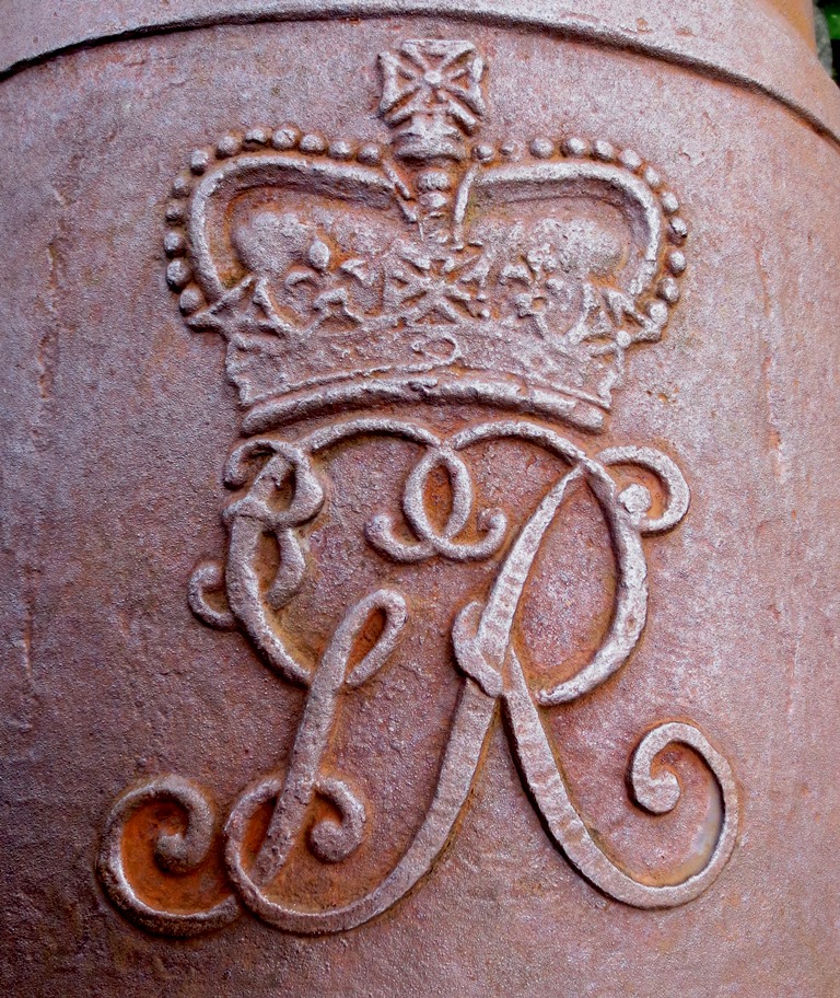 There are three cast iron smoothbore muzzleloading guns on iron garrison carriages in Elizabeth Fort.