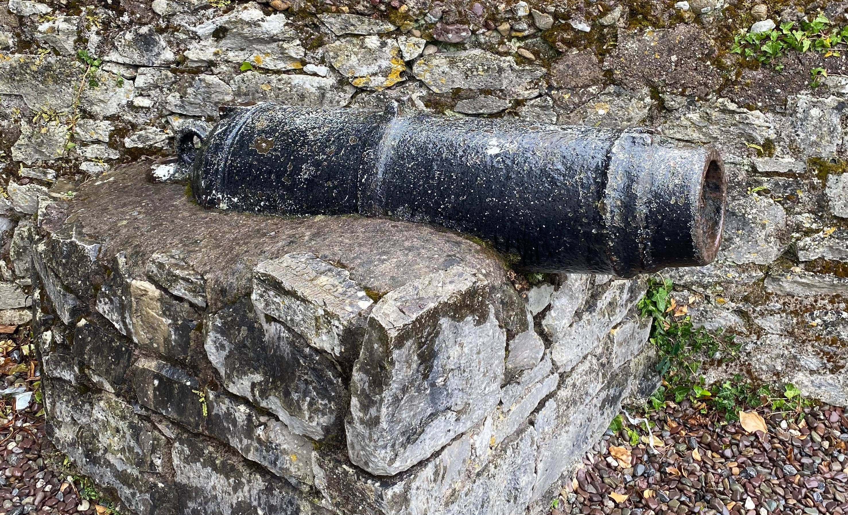 6-pounder cast iron smoothbore muzzleloading gun, mounted on a stone cairn at Black Rock Castle.