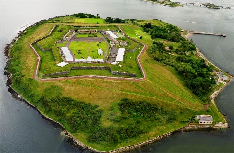 In the last 1300 years Spike Island has been host to a 6th century Monastery, a 24 acre Fortress, the largest convict depot in the world in Victorian times and centuries of island homes. The island’s rich history has included monks and monasteries, rioters and redcoats, captains and convicts and sinners and saints. Over the course of its history, what is now called Fort Mitchel has been used as a base by the British and the Irish armies, the Irish Coast Defence Artillery and the Irish Naval Service. Today the island is dominated by the 200 year old Fort Mitchel, the star shaped Fortress which became a prison holding over 2300 prisoners. Take the scenic ferry ride from Kennedy Pier, Cobh, and enjoy a fully guided tour of our island and fortress, and relax in our cafe and picnic areas. Get captured in the history and mystery of this magical heritage island. The 24 acre star shaped Fort Mitchel is one of the largest in the world and it was the cutting edge of military technology when it was completed around 1850. The points of the star shape meant that defenders could arc fire over all parts of the island, making the whole island one effective kill zone. Should anyone get close enough to the Fort, flanking galleries made for ideal sniper positions hovering over enemy troops. And the whole Fort is set down in such a way that it can barely be seen by enemy troops, making it almost impossible to target.