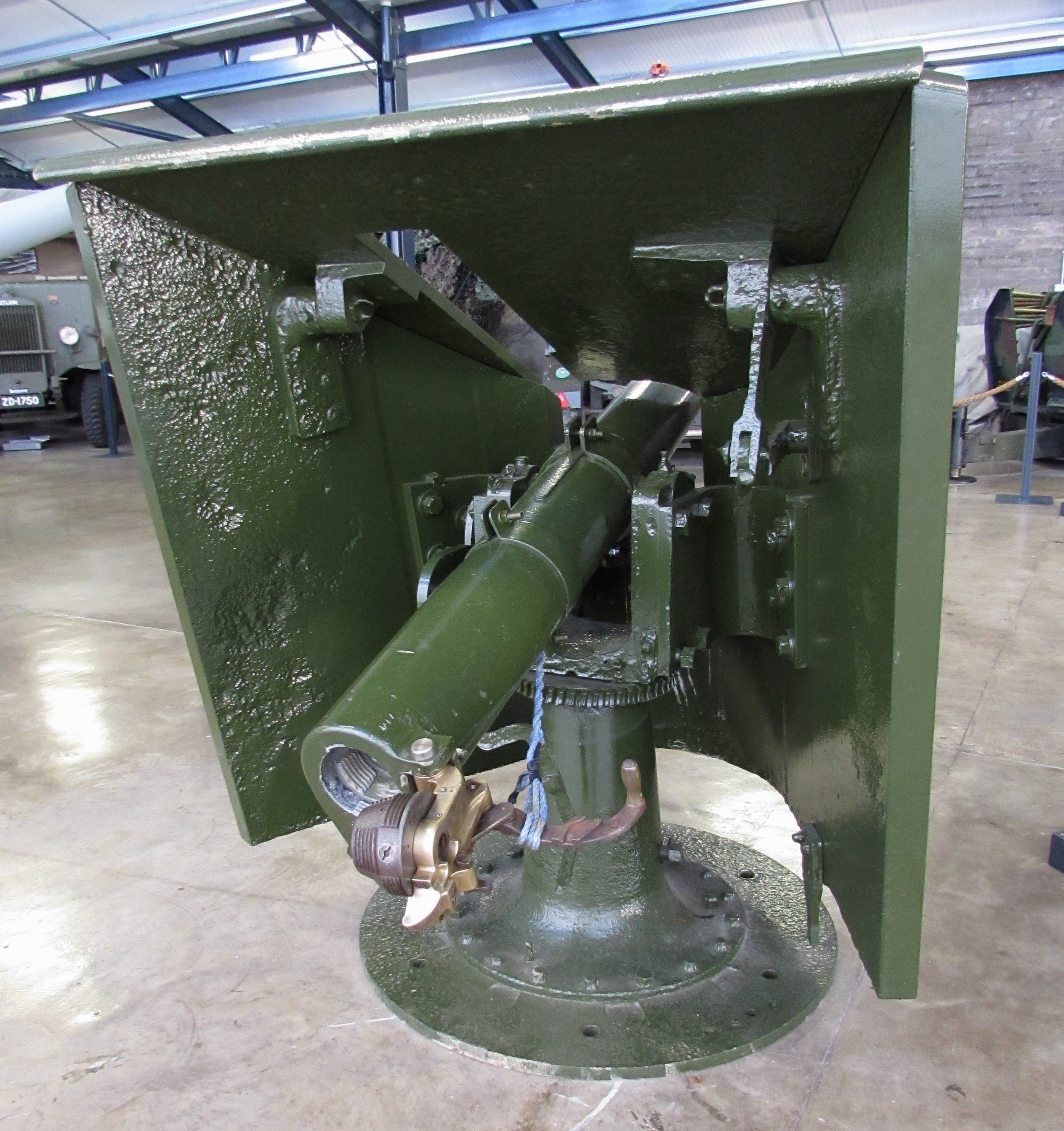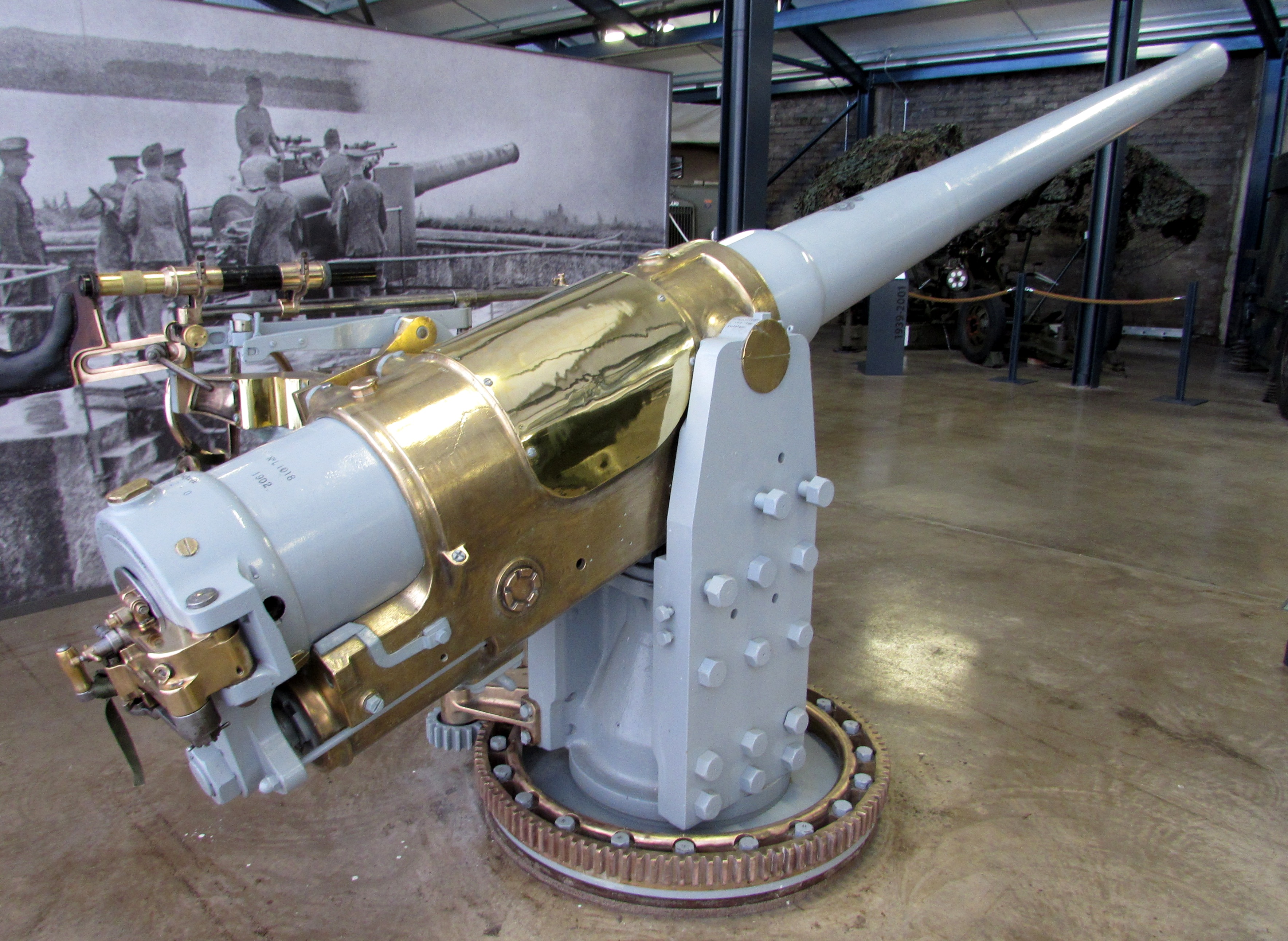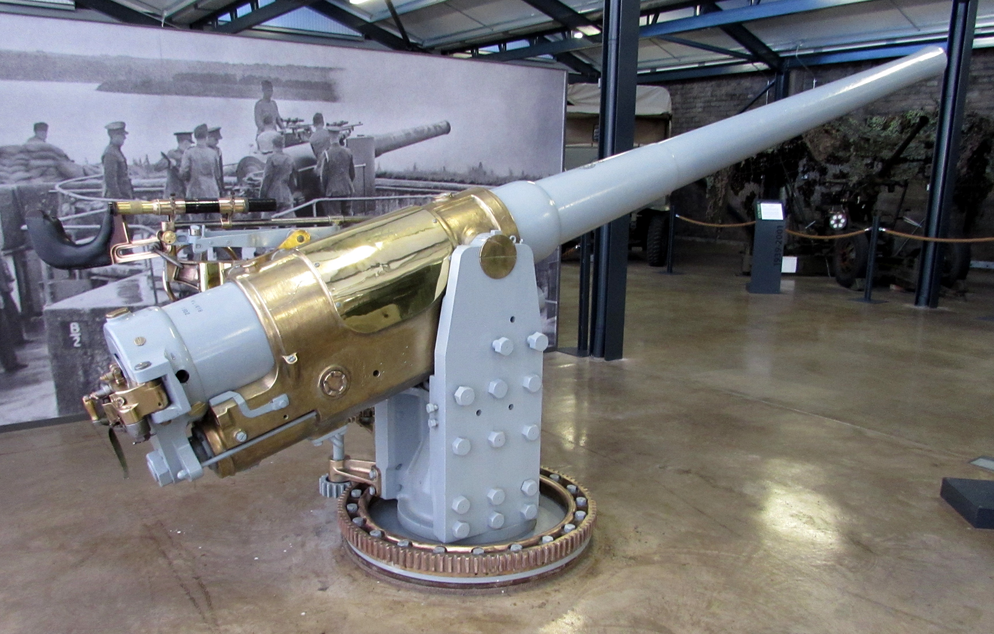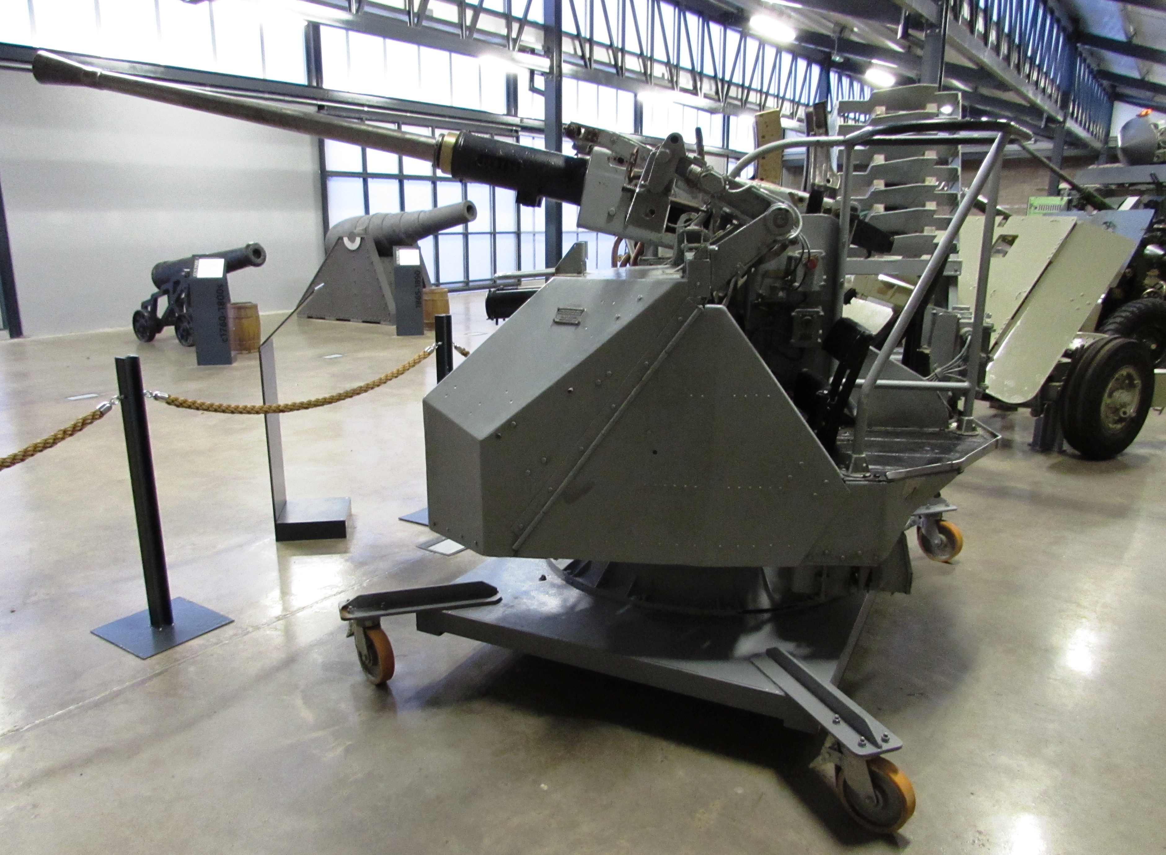 QF 12-pounder 12-cwt Mk. I Gun mounted on a shielded iron gun mount.