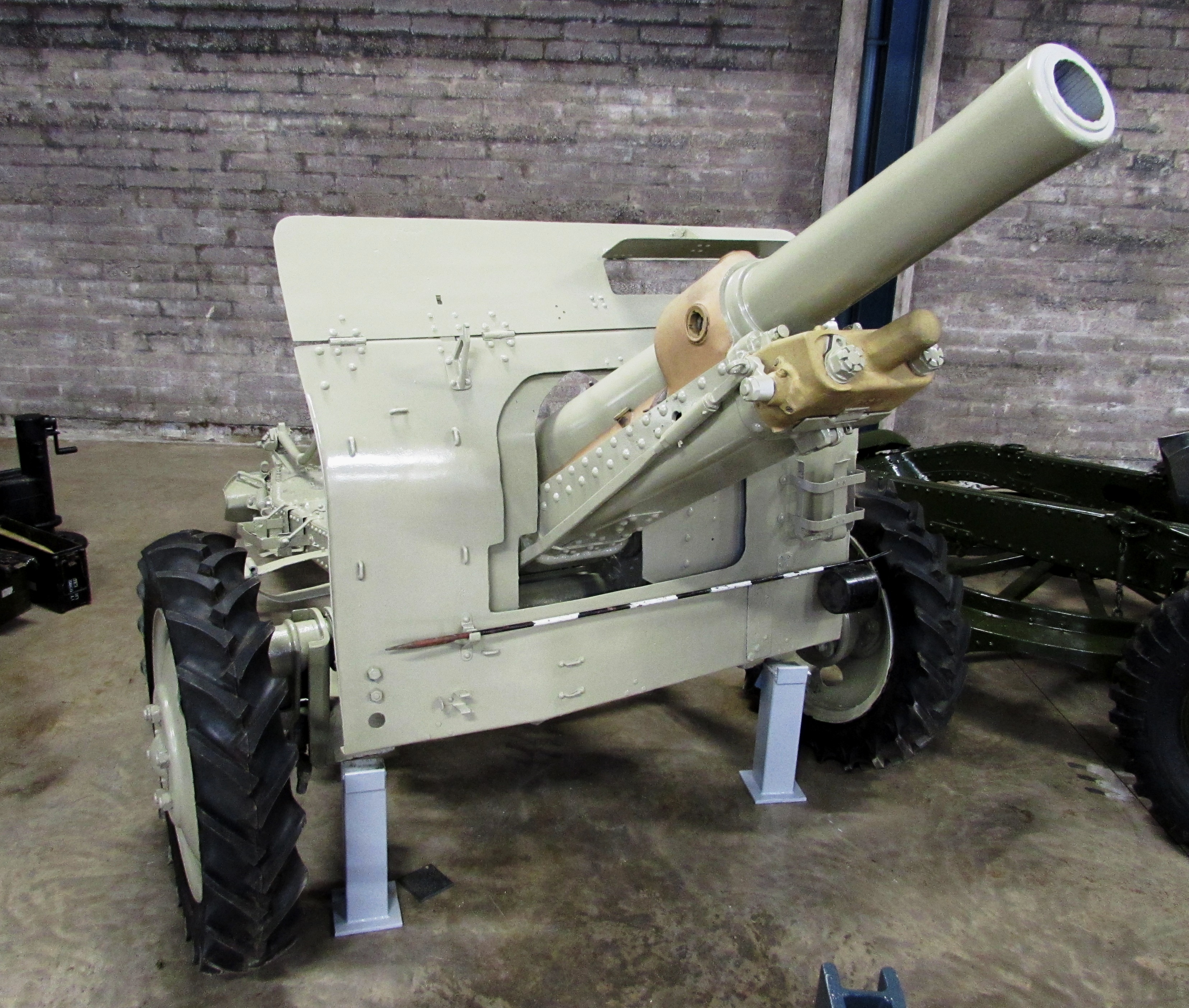 40-mm Bofors Light Anti-Aircraft Gun on wheeled mount with shield and limber.