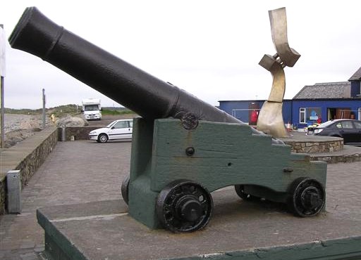 Blomefield (possible 32-pounder) SBML Gun mounted on a wood carriage. When the battery of the Sligo Militia at Rosses Point was dismantled in 1907, Mr Murrow purchased three cannon and mounted one at the seashore where it proudly stands to this day.