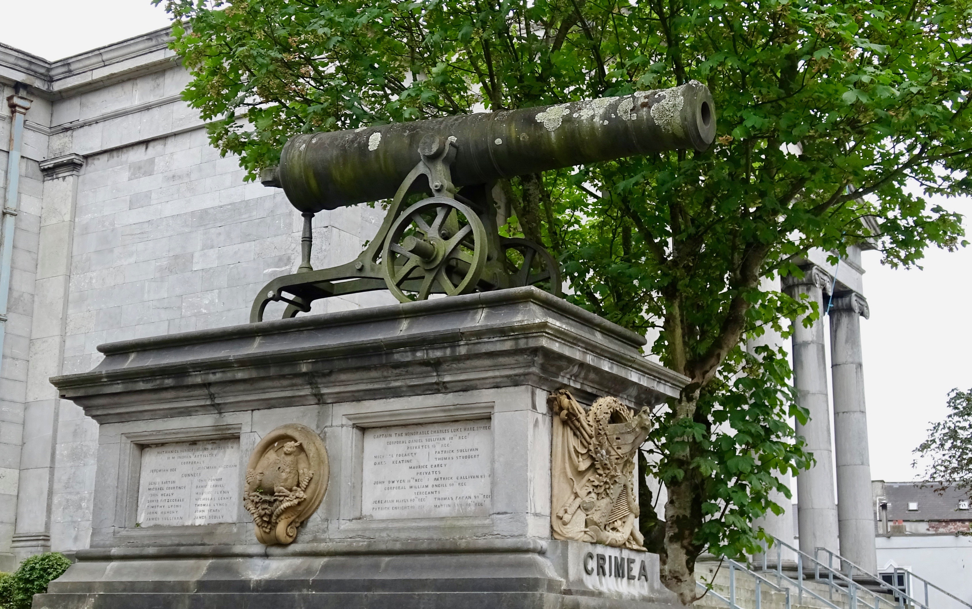 One of two Russian guns from Crimean war on display at Tralee, Co Kerry, Ireland with the sign: “In memory of the men of Kerry who fell in the service of their country in the wars in Russia, India and China 1854 to 1860”.
