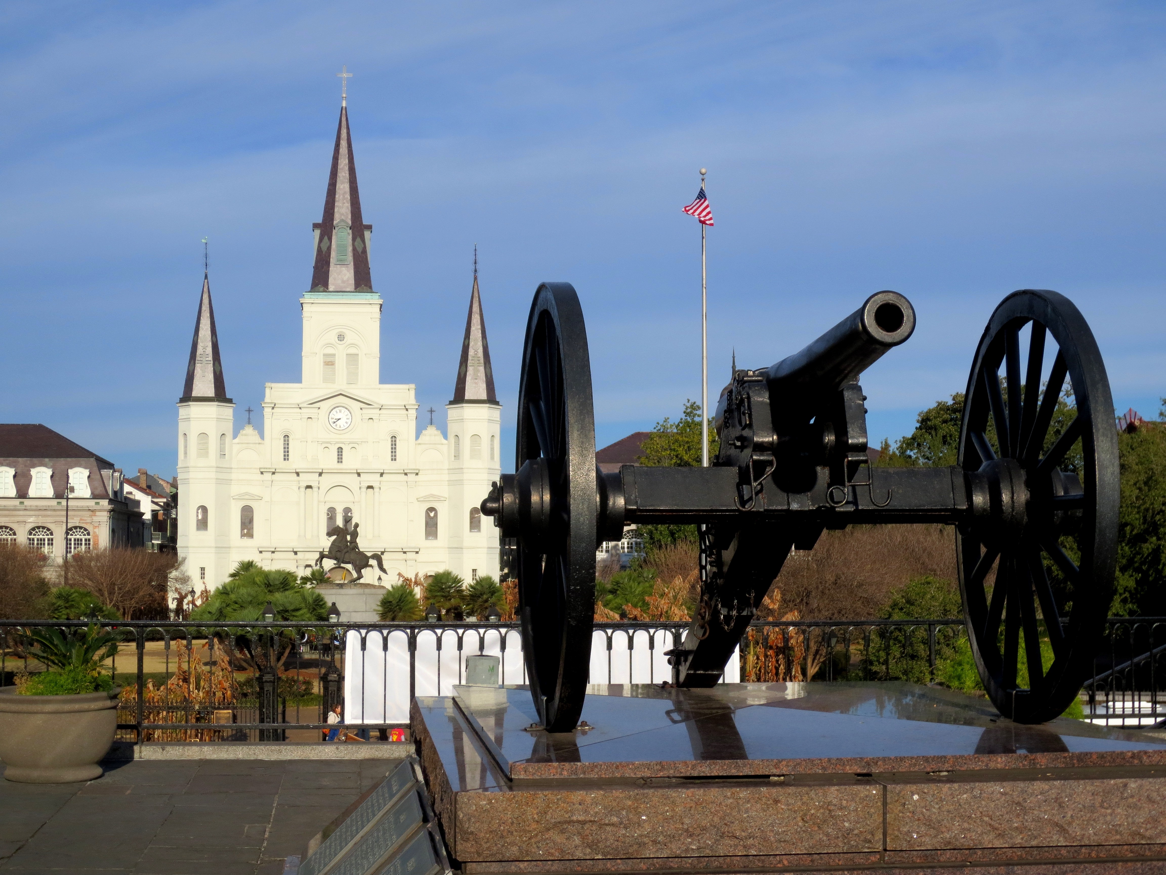 Jackson Square is a historic park in the French Quarter of New Orleans. It is the site where in 1803 Louisiana was made United States territory pursuant to the Louisiana Purchase. A pair of large possibly 30-pounder (4.2-inch) Army Parrott Rifles guard the square.