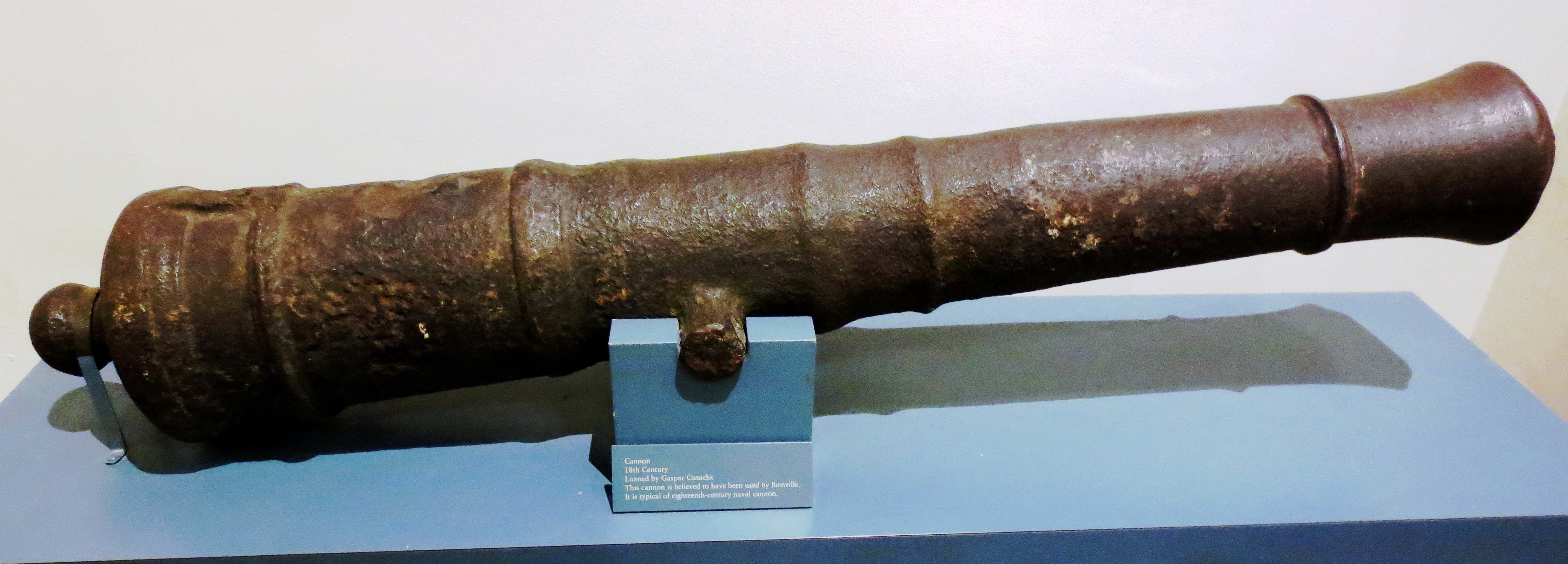 18th Century smoothbore muzzle-loading Gun used by Bienville, on display inside the Louisiana State Museum.