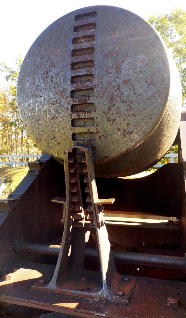 This view shows the elevation ratchets with the ratchet post in place which was used to set and retain the elevation of this 15-inch gun.