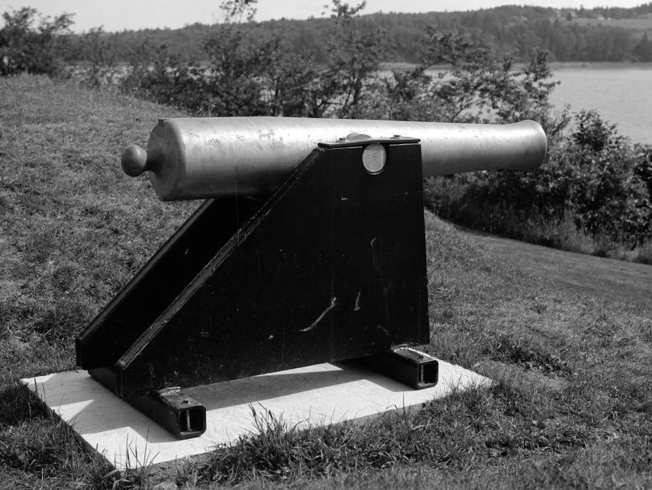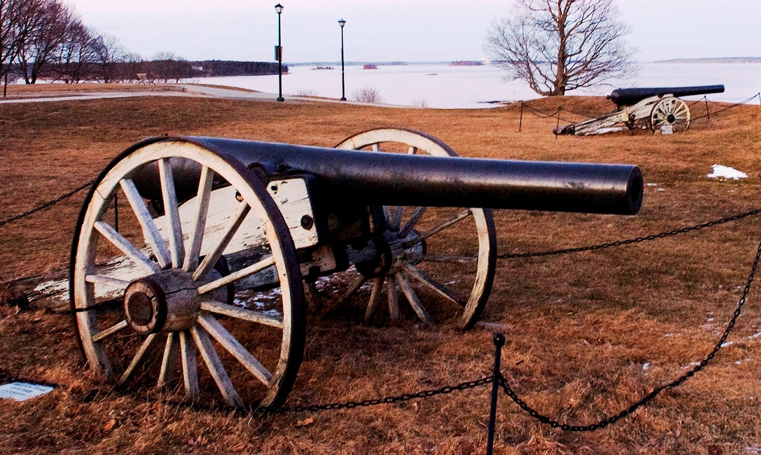Fort O’Brien in the Town of Machiasport is one of the oldest forts in the state.  This outpost was built in 1775 as Fort Machias by two officers in the Continental Army, Captain Jeremiah O’Brien, and Major Benjamin Foster.  Established in response to a possible attack following the capture by American forces of the HM Schooner Margaretta.  The British attack was swift and in 1777 chased off the defenders, but the British did not stick around, and the fort was reoccupied by 1781 under the name Fort O’Brien.  With the end of the Revolution, the fort was abandoned and fell into disrepair.  When border disputes in the early 19th century threatened to boil over the old post was rebuilt with a stone and earth bastion, and mounted four guns.  The fort never saw action during the British invasion of 1814 but it was the final American post that was destroyed by the British after they had established their occupation.  The British simply took the guns and demolished the position rather than commit the troops to occupy it.  The American army would rebuild the post for the third time during the American Civil War, mounting three 32-pound guns along with a pair of rifled 24-pounder guns.  Due to its location, the fort never saw action and was abandoned in 1865.  Today a single brass Napoleon gun from the civil war is mounted on the earthworks; the powder magazine is still there as an overgrown mound.  The site is designated a state park and sits behind Fort O’Brien School.