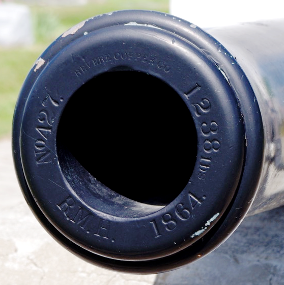 This 100-Pounder (per the research of Messers Olmstead, Stark, and Tucker) was carried aboard USS Dawn. Therefore it is very likely to be the 100-Pounder Parrott that provided close naval artillery support to the troops of the 1st and 10th USCI Regiments during the Battle of Wilson’s Wharf as the United States Colored Troops successfully repelled the attack of Fitzhugh Lee’s cavalry. (Santee1821: 19th Century Naval Ordnance)