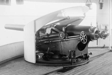 Six–inch Naval Rifle on USS Newark.  The USS Maine was armed with six of these rifles.
