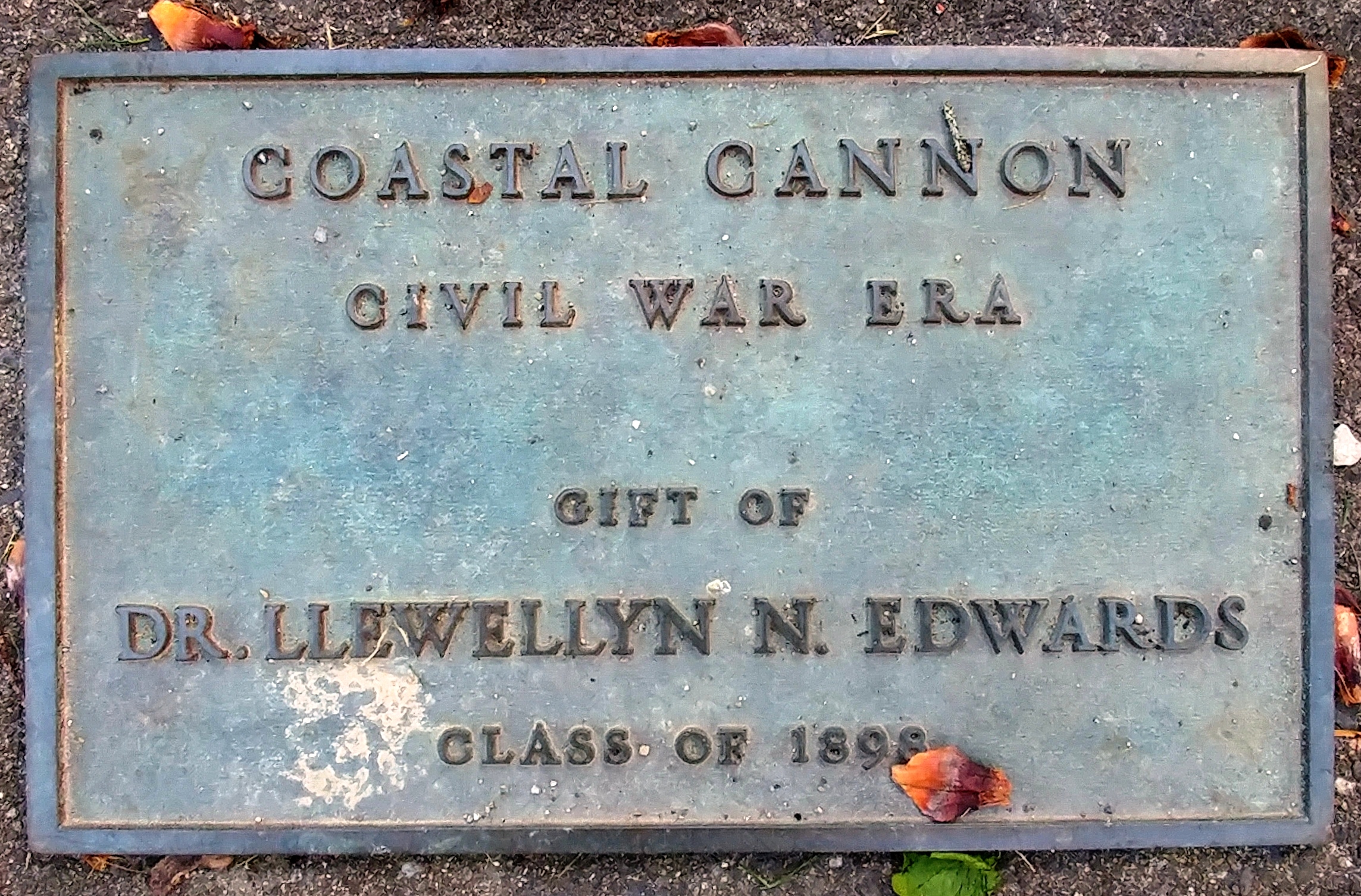 Bronze 6-pounder Model 1841 smoothbore muzzle-loading Field Gun, Cyrus Alger & Company, dated 1861, mounted on a wood naval gun carriage, alongside the Veteran’s War Memorial.