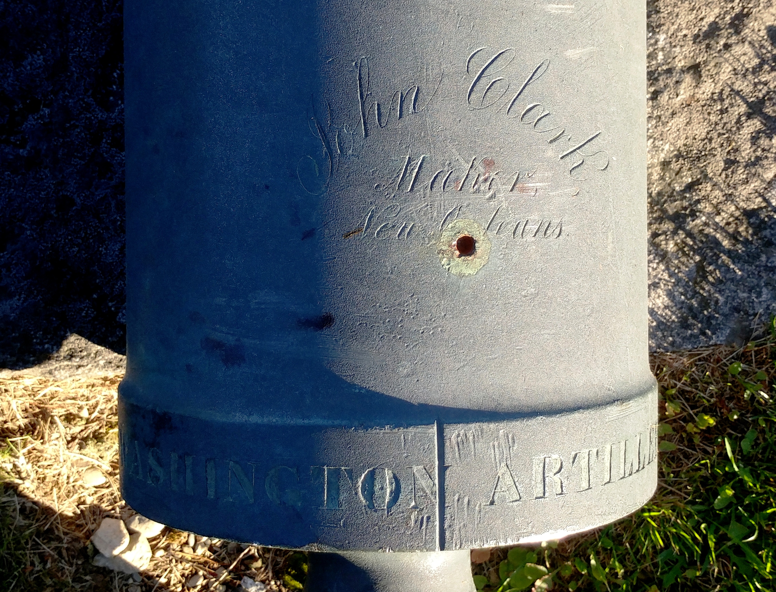 Bronze 6-pounder smoothbore muzzle-loading Gun, mounted on a concrete stand, Washington Artillery, John Clark Maker, New Orleans, No. 3 of 4 at the base of the Civil War Memorial.