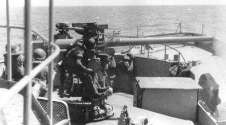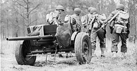 The Ordnance Quick-Firing 6-pounder 7 cwt, or just 6 pounder, was the primary British 57-mm anti-tank gun, in service during the middle of the Second World War, as well as the main armament for a number of armoured fighting vehicles. It was first used in North Africa in April 1942, and quickly replaced the 2-pounder in the anti-tank role, allowing the 25-pounder to revert to its intended artillery role. The United States Army adopted the 6-pounder as their primary anti-tank gun under the designation 57-mm Gun M1.