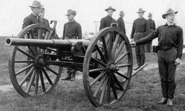 The M1902, a.k.a. M1905 3-inch gun (76.2-mm) was the U.S. Army’s first steel, rifled, breech loading, quick-firing field gun. The features of rifling, breech loading and springs to absorb the gun’s recoil and quickly return it to the firing position combined to improve the range, accuracy, and rate of fire of the gun, allowing it to be used more effectively in operations with infantry. These new capabilities allowed the gun to provide accurate indirect fire on targets not in a direct line of sight, which provided crucial firepower for infantry attacks. It was also one of the first artillery guns to have an armoured shield to protect the crew from small arms fire.