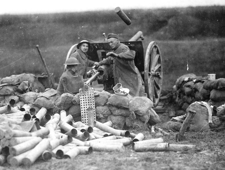 The French 75-mm field gun was a quick-firing field artillery piece adopted in March 1898. Its official French designation was: Matériel de 75-mm Mle 1897. It was commonly known as the French 75, simply the 75 and Soixante-Quinze (French for “75”). Initially, the French 75 had been designed as an anti-personnel weapon system for delivering large volumes of time-fused shrapnel shells on enemy troops advancing in the open. After 1915 and the onset of trench warfare, other types of battlefield missions demanding impact-detonated high-explosive shells prevailed. By 1918 the 75s became the main agents of delivery for toxic gas shells. The 75s also became widely used as truck mounted anti-aircraft artillery. They were also the main armament of the Saint-Chamond tank in 1918. The French 75 is widely regarded as the first modern artillery piece.