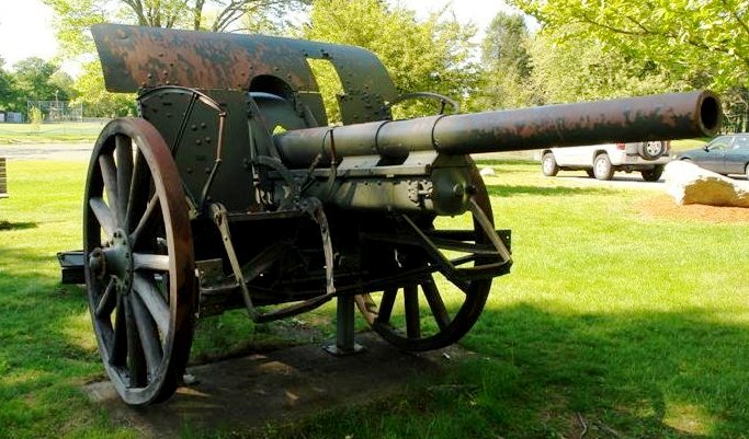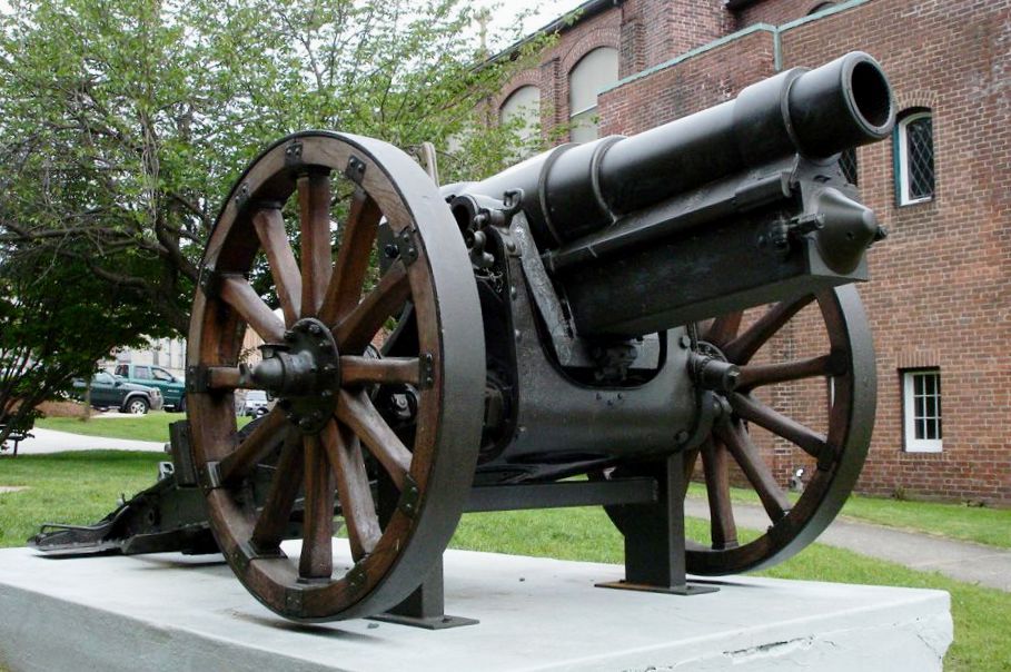 German First World War 15-cm schwere Feldhaubitze 1902 (15-cm sFH 02), (Serial Nr. TBC) heavy field howitzer, facing the Assabet River in Liberty Park.