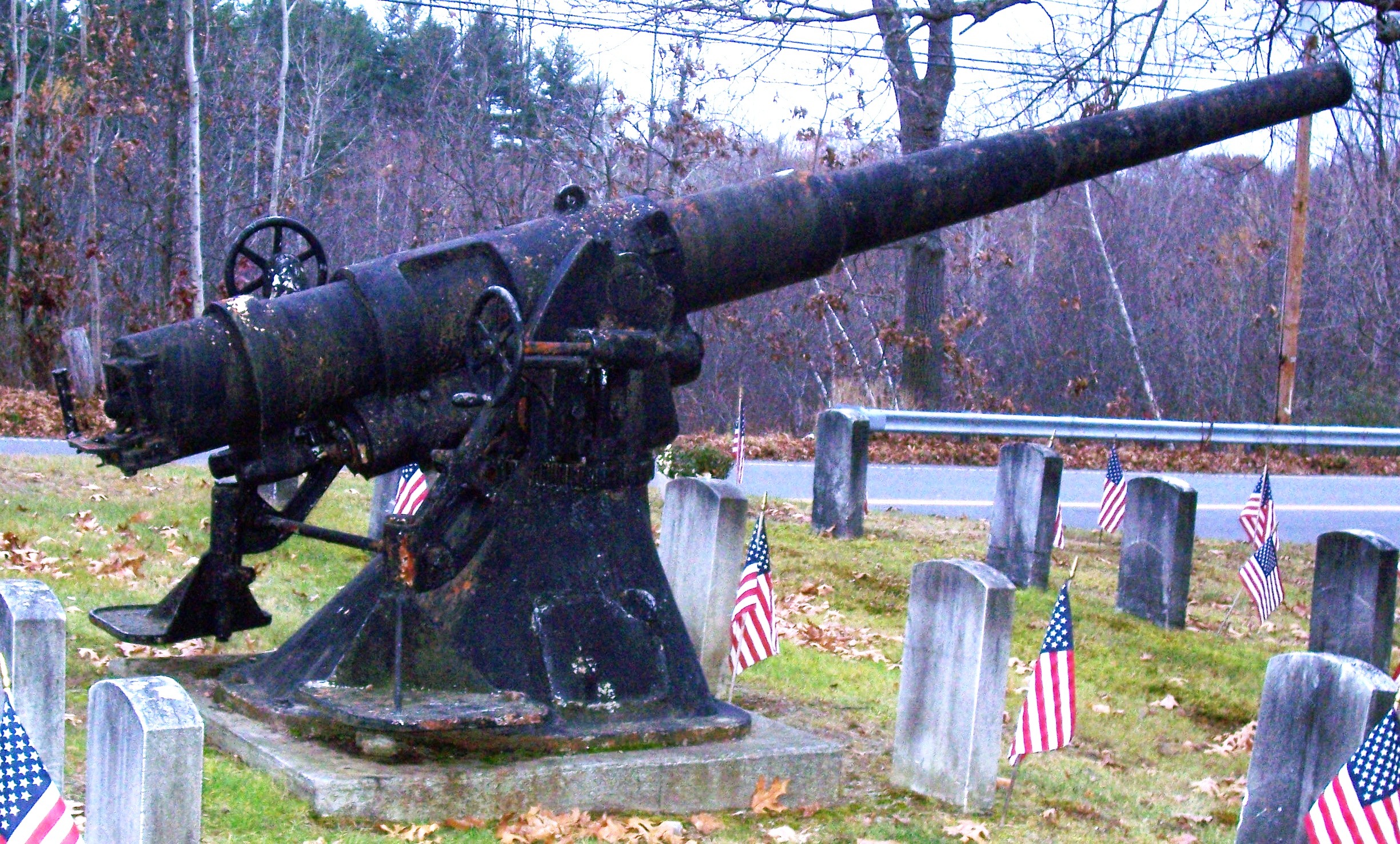 11-inch Navy Dahlgren Gun mounted on a concrete stand, Rock Hill Cemetery in Foxboro.