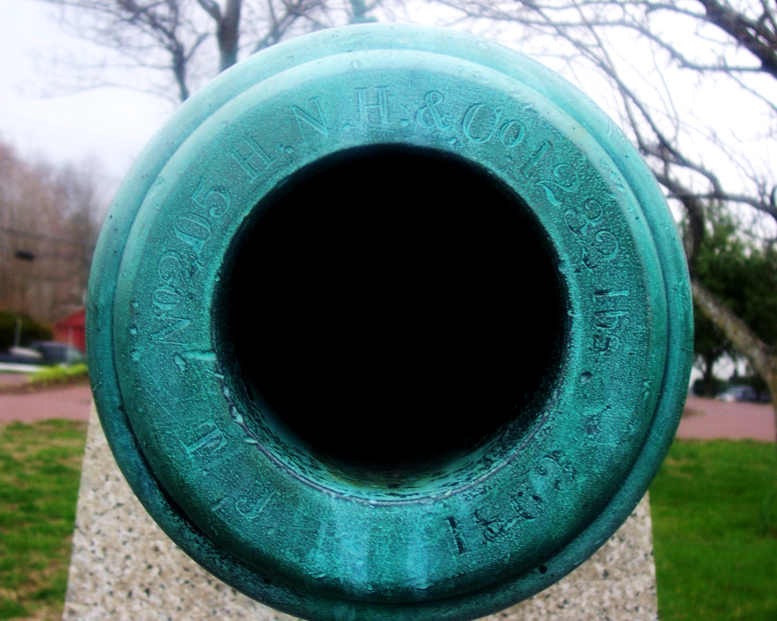 Two United States Navy 12-Pounder Bronze Dahlgren Boat Howitzers are displayed in Hanover, Massachusetts on either side of a monument “Erected by the people of Hanover in grateful memory of her sons who died in the War for the Preservation of the Union – 1878”. The two boat howitzers appear to be mounted on original carriages which have had their wheels replaced at some point.