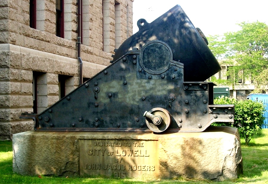 13-inch Seacoast Mortar, Reg. No. 1172, 1863, weight 17, 280-lbs. This mortar was transferred from the Portsmouth, NH Navy Yard to the city of Lowell in 1913 but not mounted until December 1915. It is located between the Pollard Memorial Library and Lowell City Hall along Merrimack Street.
