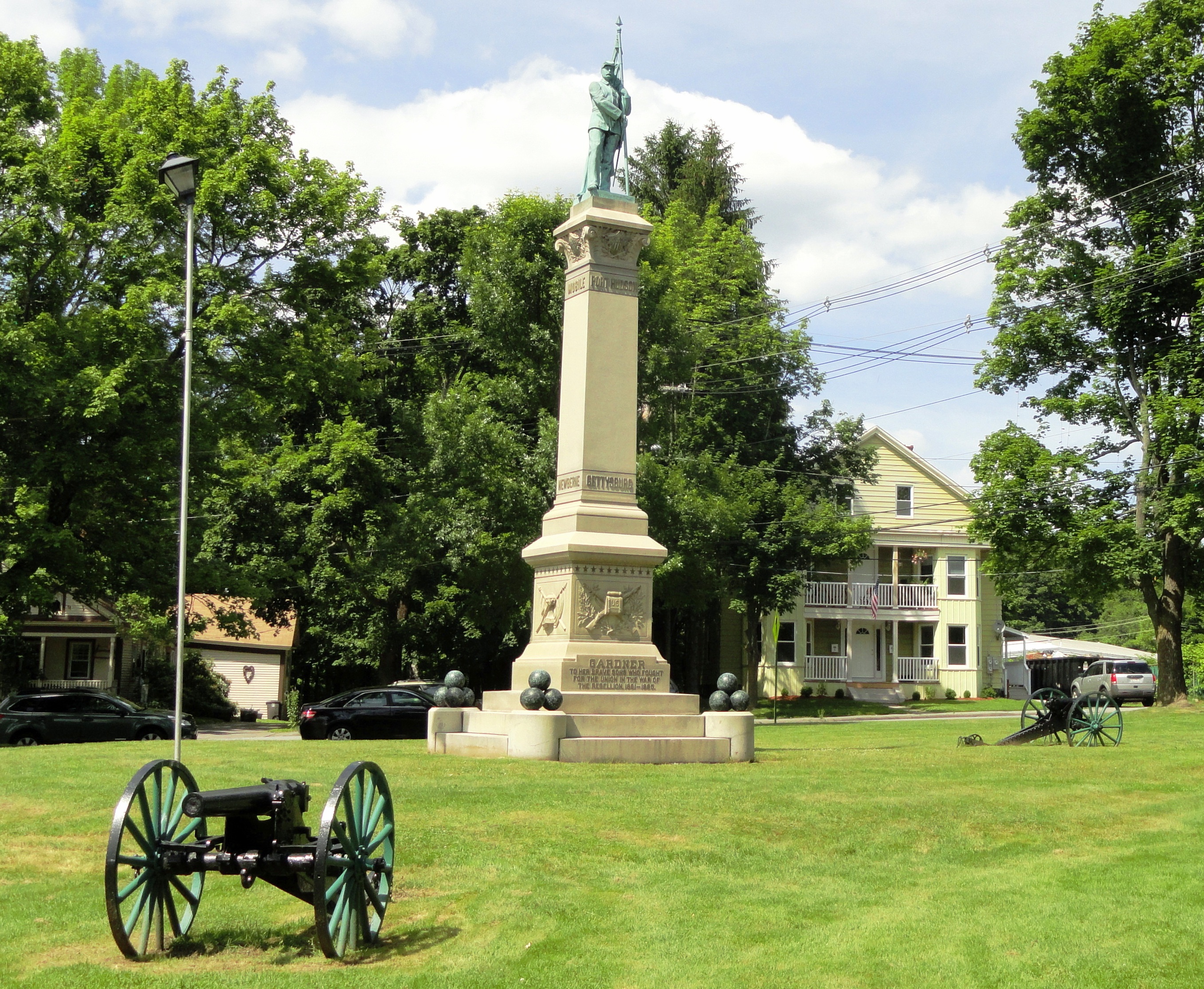 Bronze 12-pounder Napoleon Model 1857 smoothbore muzzle-loading Gun-Howitzer, (Federal Gun with muzzle swell used in the Civil War), Hinsdale War Memorial, near the intersection of South Street (Route 8) and Maple Street (Route 143), dedicated in 1923. The cannon was used in the siege and battle of Port Hudson, Louisiana.