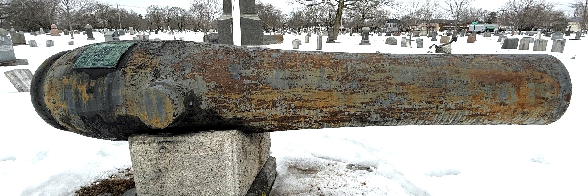 11-inch Navy Dahlgren Gun mounted on a concrete stand, Rock Hill Cemetery in Foxboro.