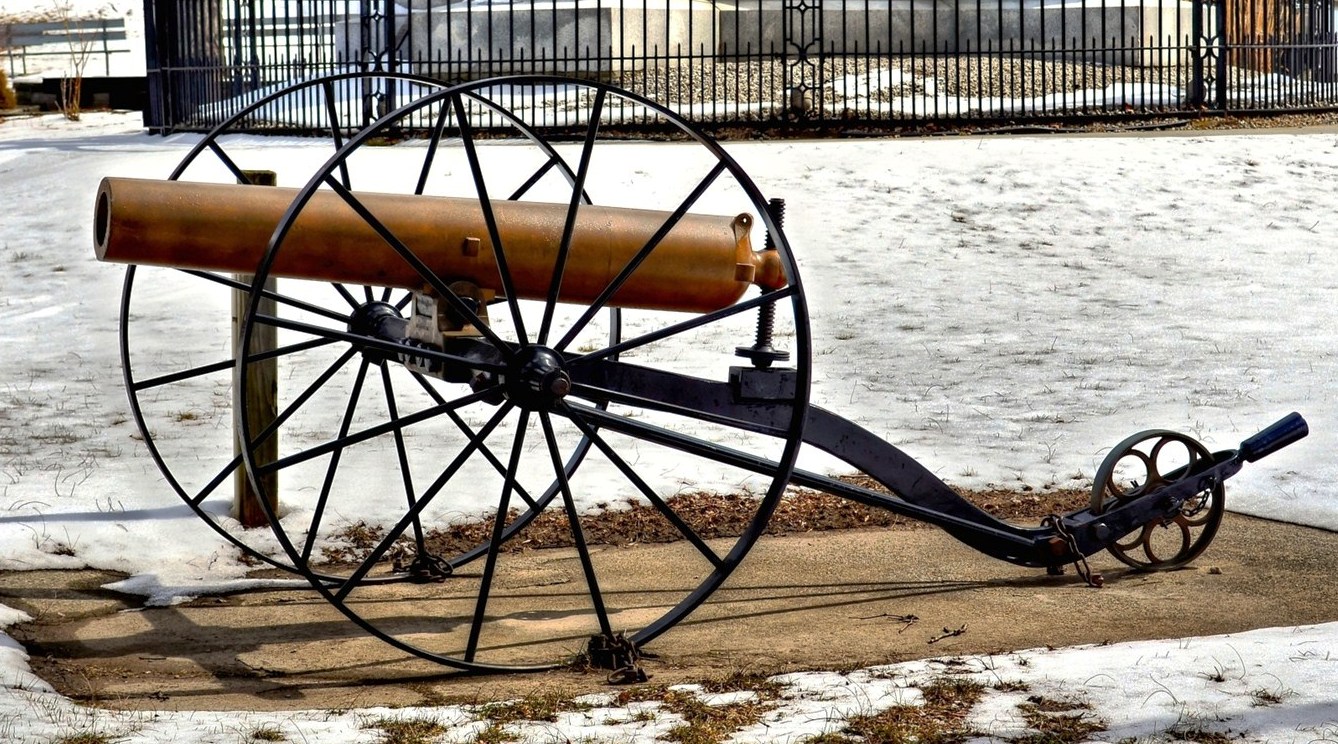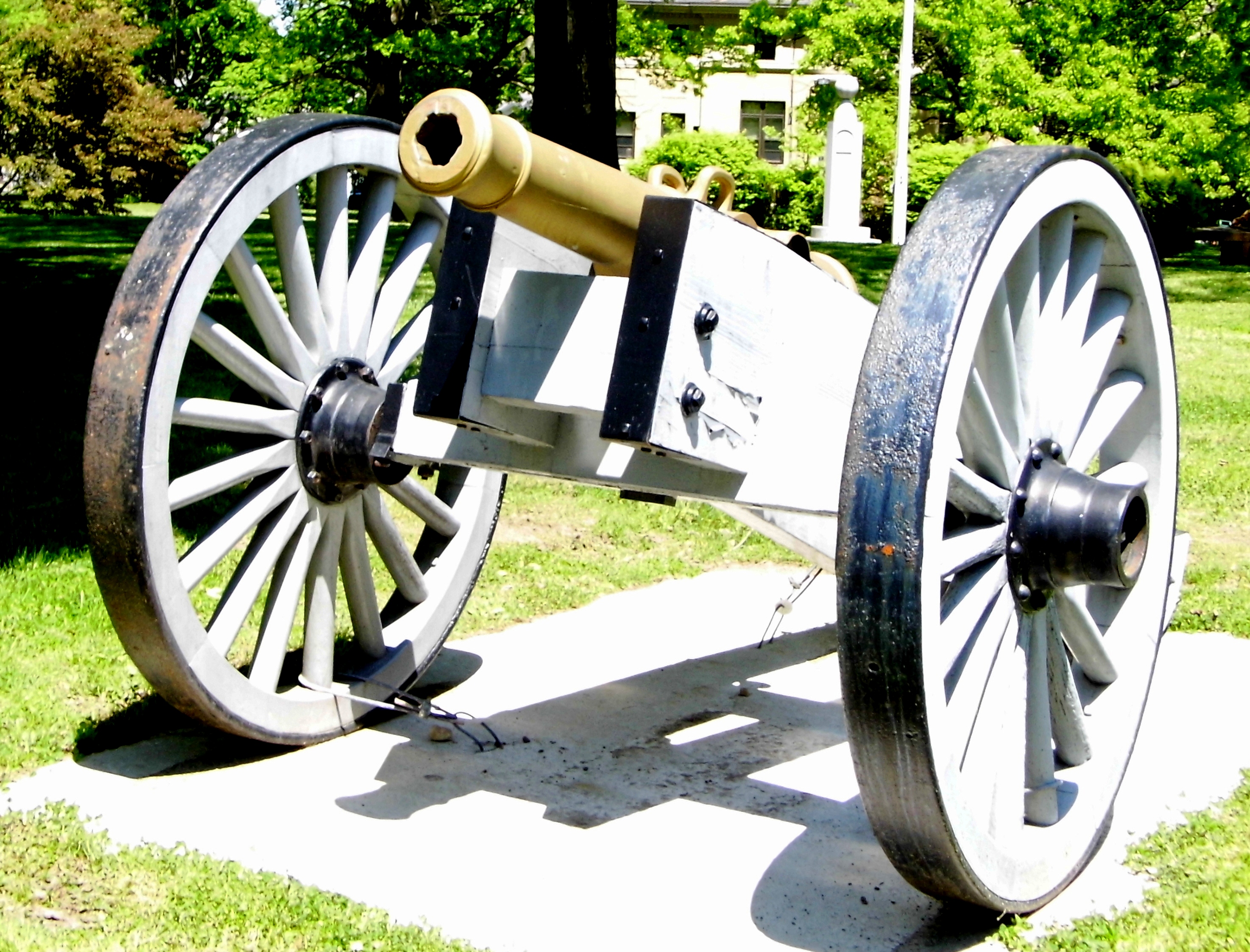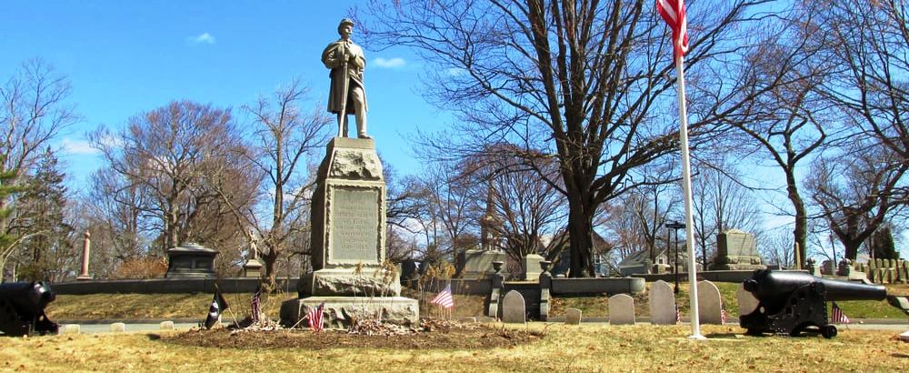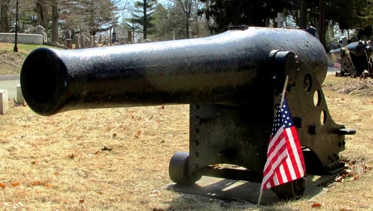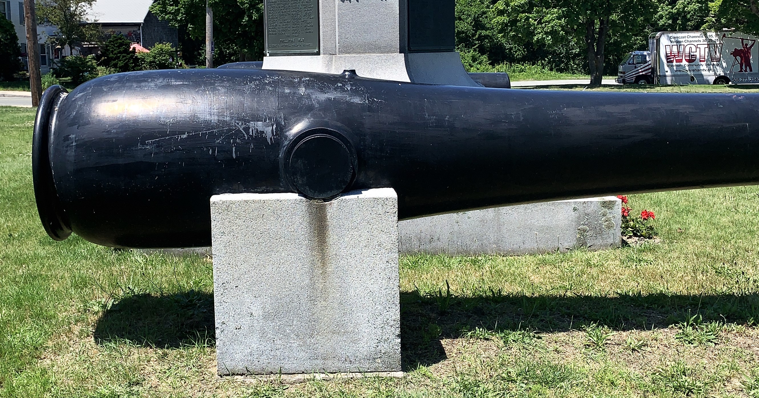 Smoothbore muzzle-loading Gun mounted on top of the Civil War Monument at the Grand Army of the Republic lot in the Evergreen Cemetery.