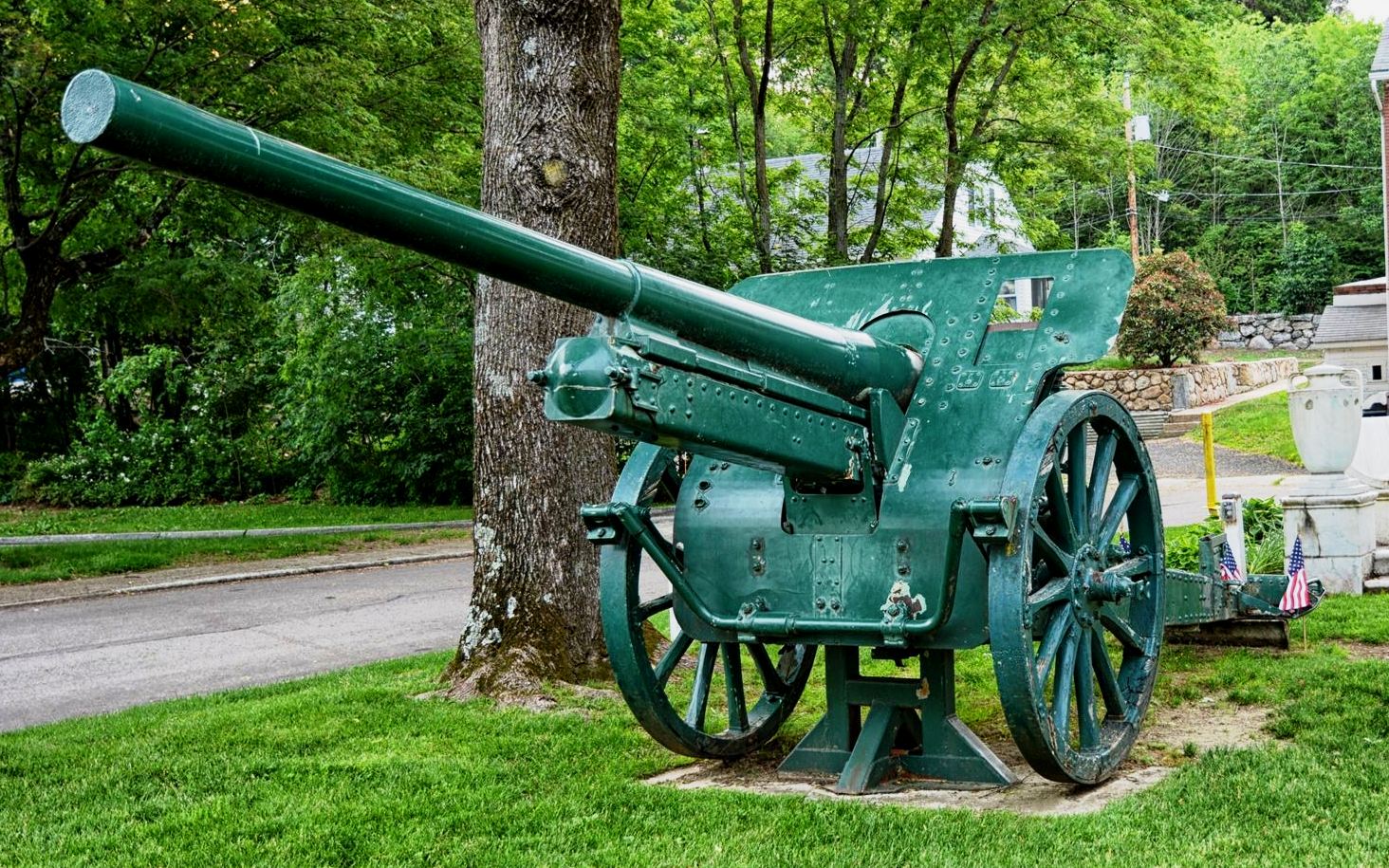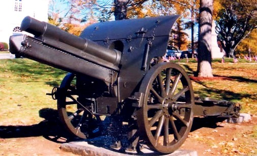 German First World War 15-cm schwere Feldhaubitze 13 (15-cm sFH 13), (Serial Nr. TBC), heavy field howitzer. This gun came to Southboro as a war trophy in 1919 and was restored in 2002. Town Common.