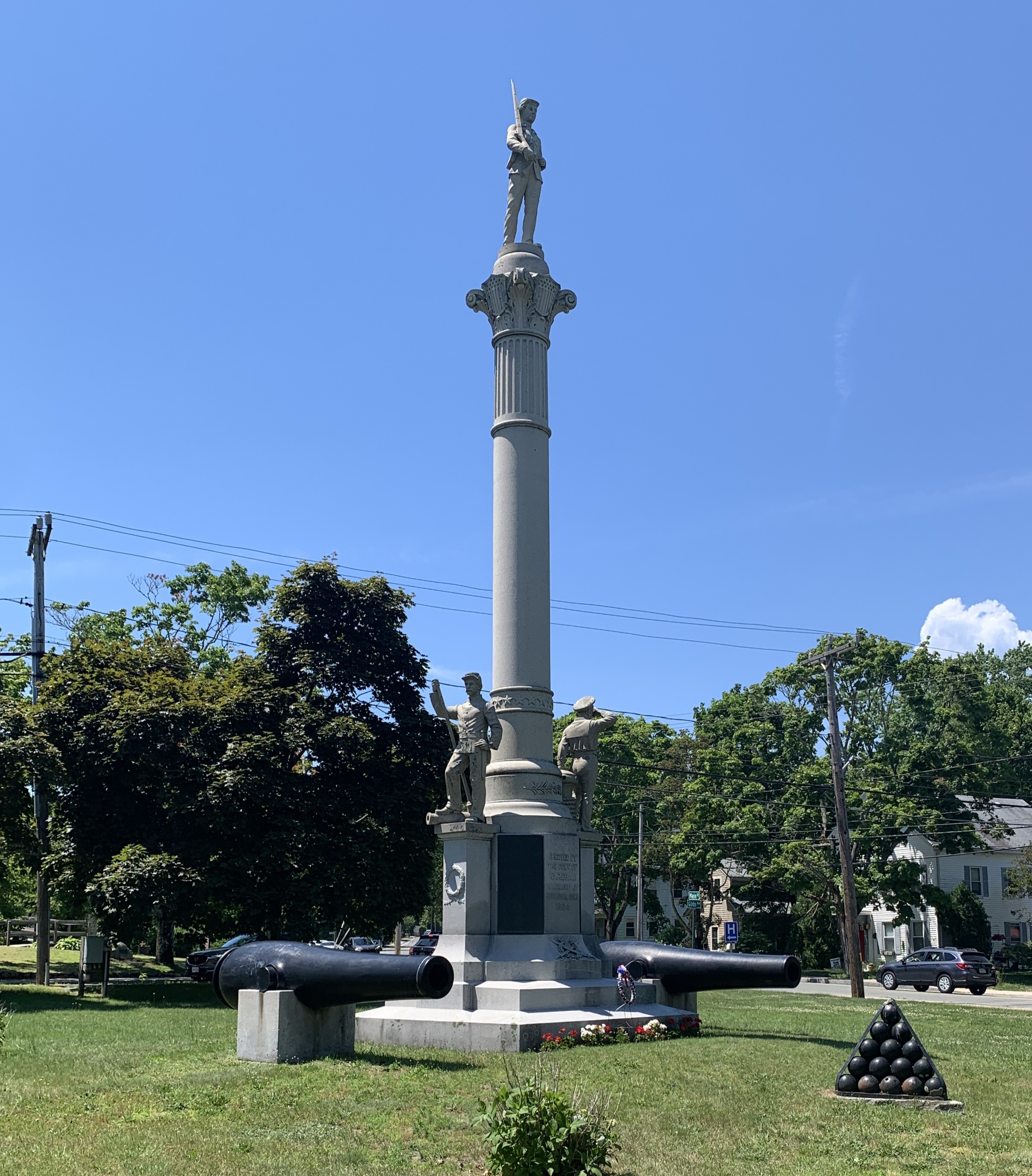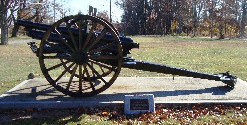 These three Civil War-era howitzers with relatively short barrels originally flanked the Soldiers’ Monument. After the construction of the Town Hall, the howitzers were moved to their current position in front of the town hall. The two outside are mounted on wheeled metal carriages and sit on concrete pads. The Dahlgrens date from the 1860’s and were placed on site between 1907-1913. They were captured and recaptured by both the Union and Confederate Armies during the Civil War, and serve to commemorate the town’s contributions to the Civil War.