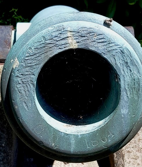 The resulting 32-Pounder of 4,500 Pounds borrowed the general shape from Admiral Dahlgren’s 9-Inch, 10-Inch, and 11-Inch cannons. However, the 32-Pounders, like the similar 8-Inch Shell guns of 6,500 Pounds, had a simplified ring cascabel. Few if any of this type of cannon would have seen any service during the Civil War. The four cannon in Stark Park were manufactured after the end of the war.