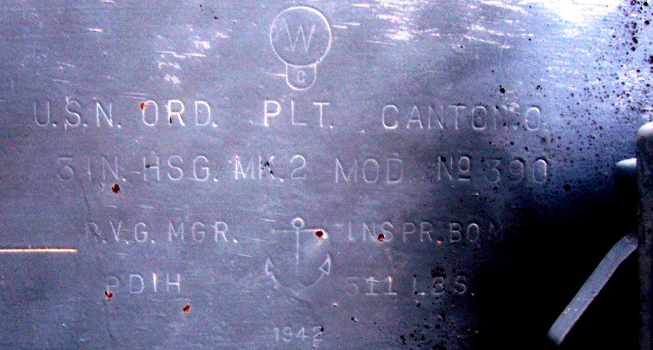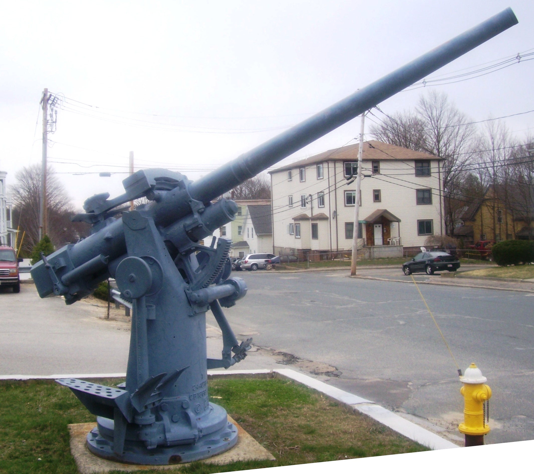3-inch (76-mm)/50 calibre deck gun Mk. 2, No. 1 of 2 on Church Street and West Water Street.
