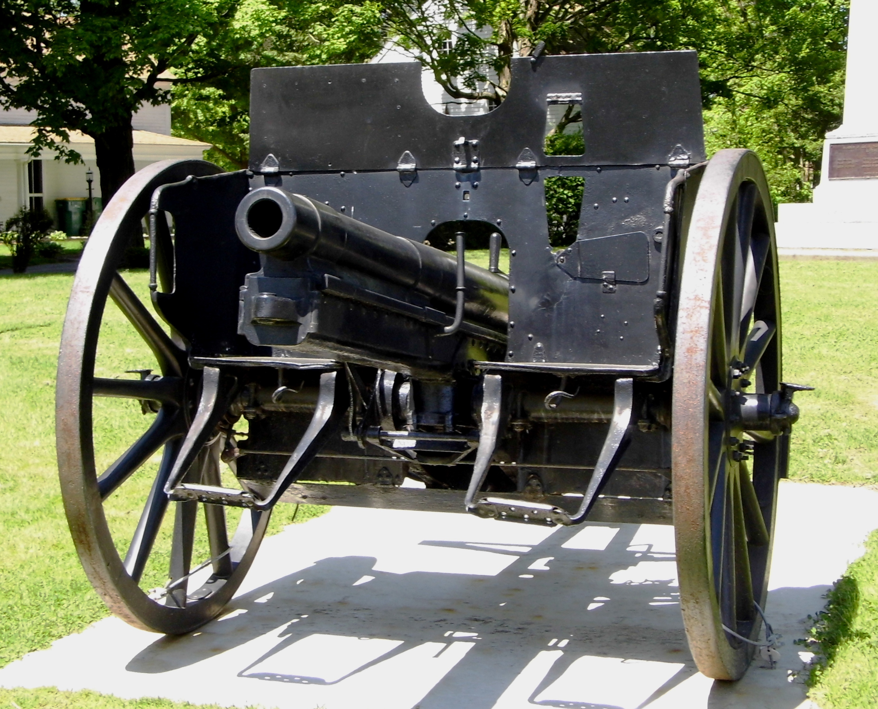 German First World War 7.7-cm Feldkanone 96 neuer Art (7.7-cm FK 96 n.A.), (Serial Nr. unknown). In front of the War memorial.