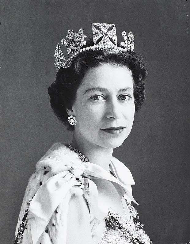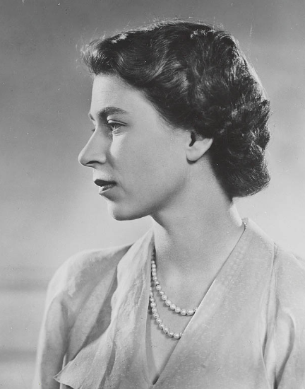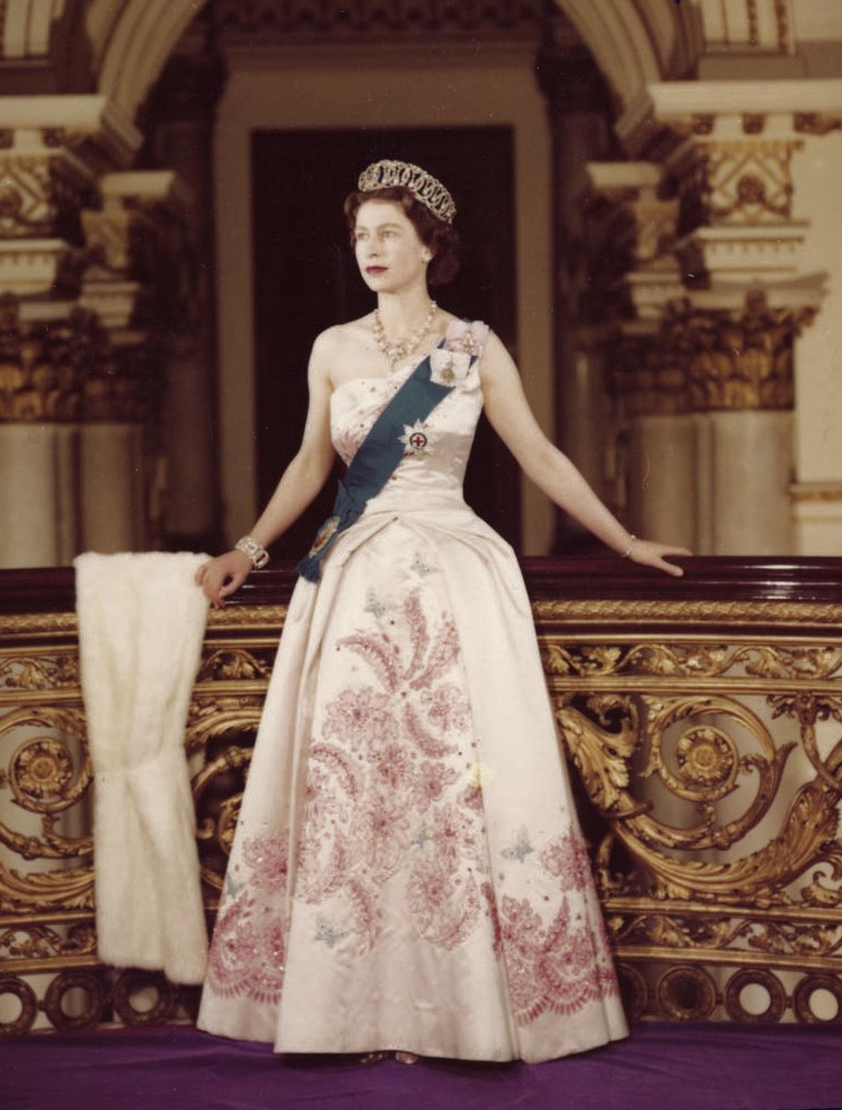 H.M. Queen Elizabeth II, at Buckingham Palace, London, England. Official portrait taken before the 1959 Royal tour.