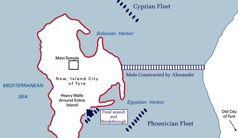 Map of the Siege of Tyre, Nov 333 to Aug 332 BC.