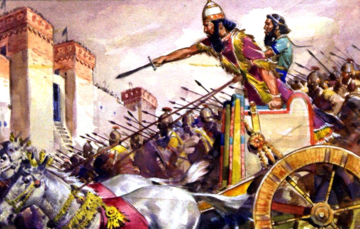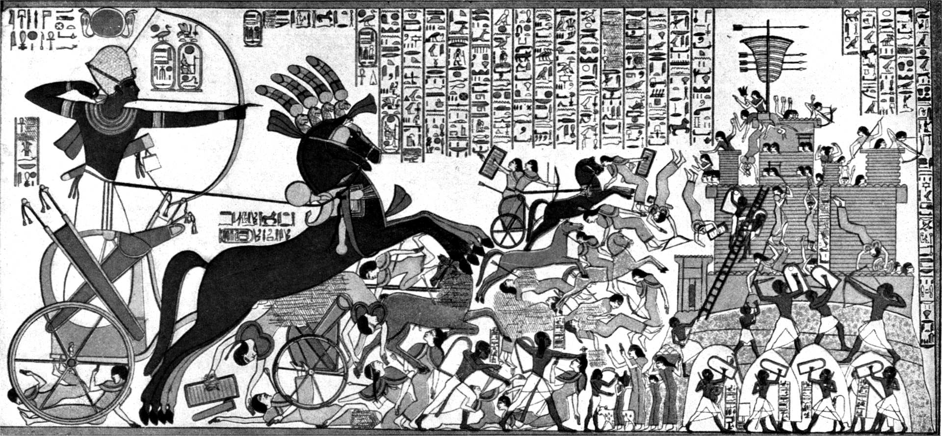 Ramesses II and his Egyptian Army engaged in the siege of Dapur, from a mural in Thebes.