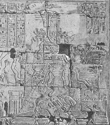 The Egyptian siege of Dapur in the 13th century BC, Bas-relief from the Ramesseum, Thebes.