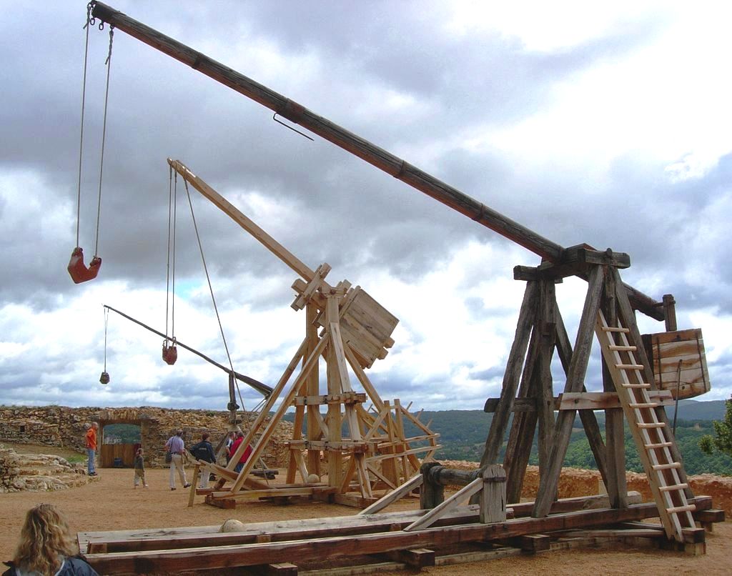 Reconstruction of a Trebuchet at Château de Castelnaud, France.