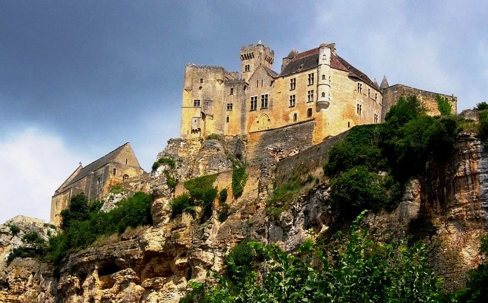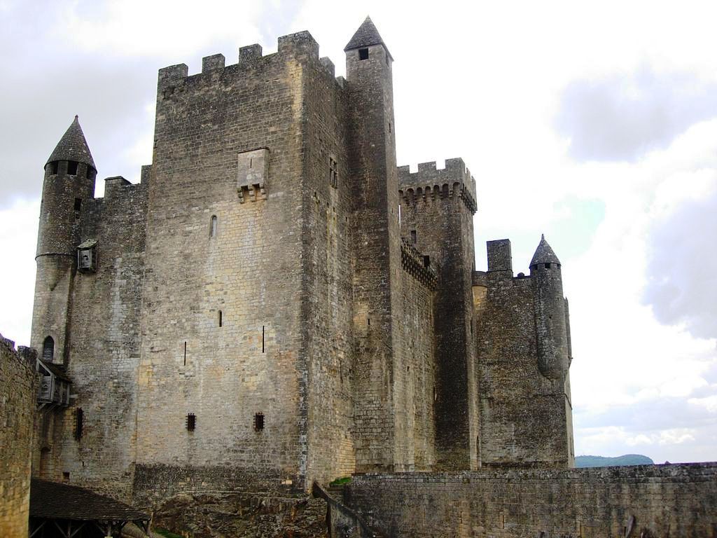 Château de Castelnaud is a medieval fortress in the commune of Castelnaud-la-Chapelle overlooking the Dordogne River in Périgord, southern France. It was erected to face its rival, the Château de Beynac. The oldest documents mentioning it date to the 13th century, when it figured in the Albigensian Crusade; its Cathar castellan was Bernard de Casnac. Simon de Montfort took the castle and installed a garrison; when it was retaken by Bernard, he hanged them all. During the Hundred Years’ War, the castellans of Castelnaud owed their allegiance to the Plantagenets, the sieurs de Beynac across the river, to the king of France. It eventually fell into ruin, but it has been restored and is a private property open to the public, houses a much-visited museum of medieval warfare, featuring reconstructions of siege engines, Mangonneaux and trebuchets.