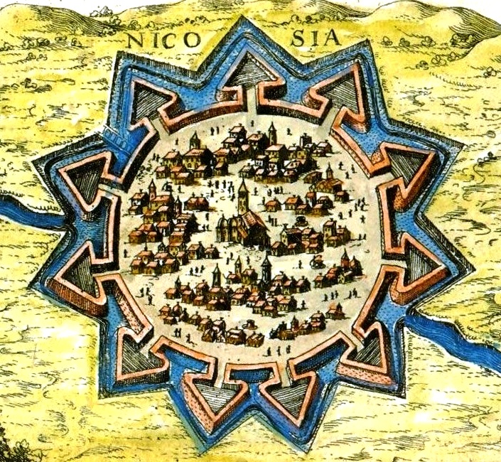 Plan view of the star fortifications in Nicosia, Cyprus in 1597, created by Giacomo Franco.