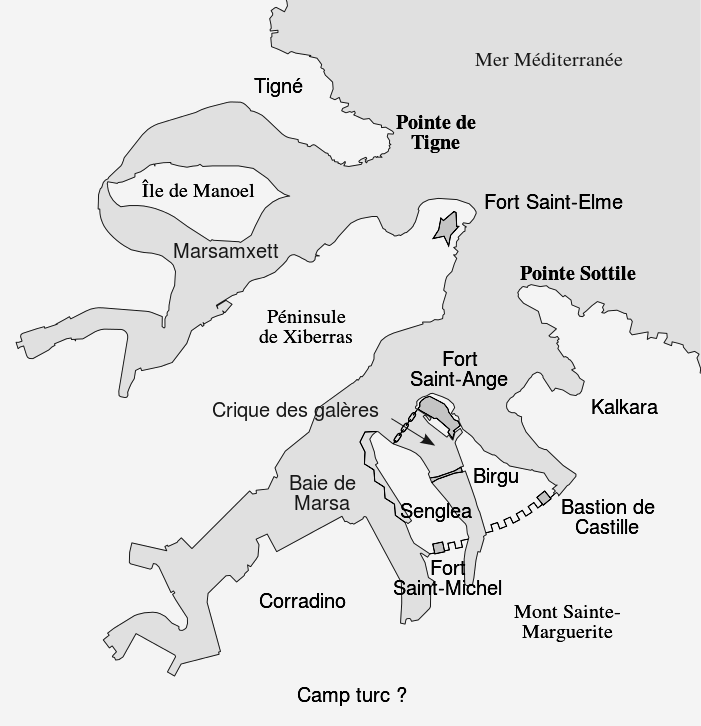 Lookouts spotted the Turkish fleet and fired cannon shots to warn the Knights.  Over 30,000 Turkish troops landed, including 6,300 Janissaries and 6,000 Spahis (who were expert bowmen), far too many for La Valette to counter attack with his force of 9000.  He instead withdrew to the strongpoints and fortifications he had already prepared.