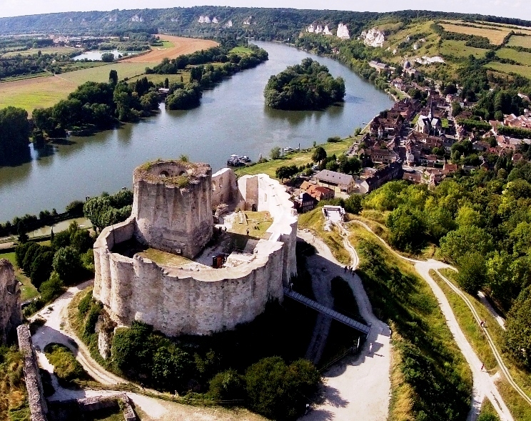 Château Gaillard, one of Europe’s earliest examples of rounded keeps and concentric fortifications and sighted to dominate Rouen in Normandy, was besieged in 1203-4 by Philip II.  The siege of this famous Château come about as a result of the long struggle between the Angevin and Capetian kings in the 12th century.  The rivalry was brought to a head when Richard built Château Gaillard in order to compensate for the loss of Gisors, which had been ceded to Philip by the Treaty of Issoudun in 1195.[149]
