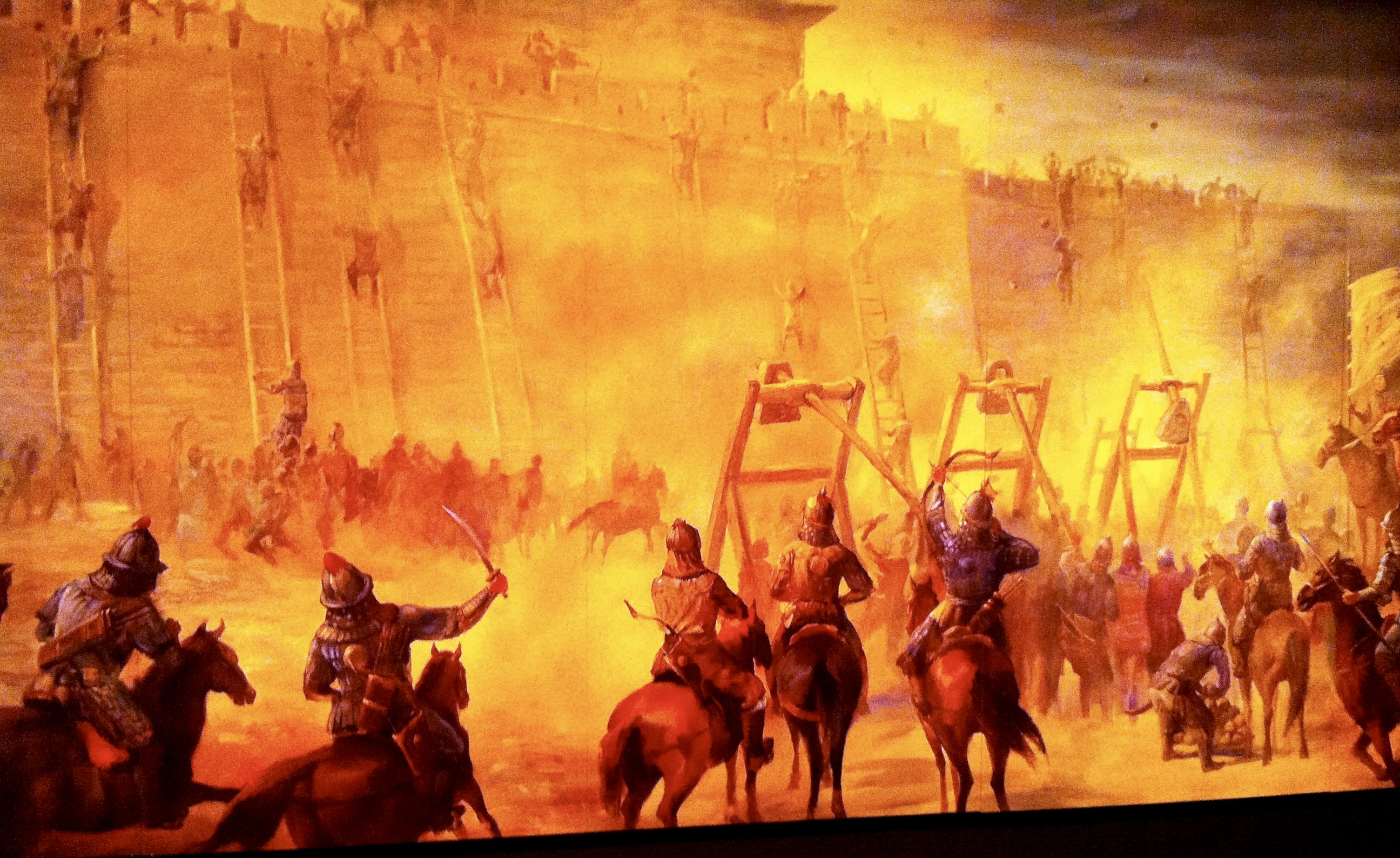 Mural of seige warfare Genghis Khan Exhibit, Tech Museum, San Jose.