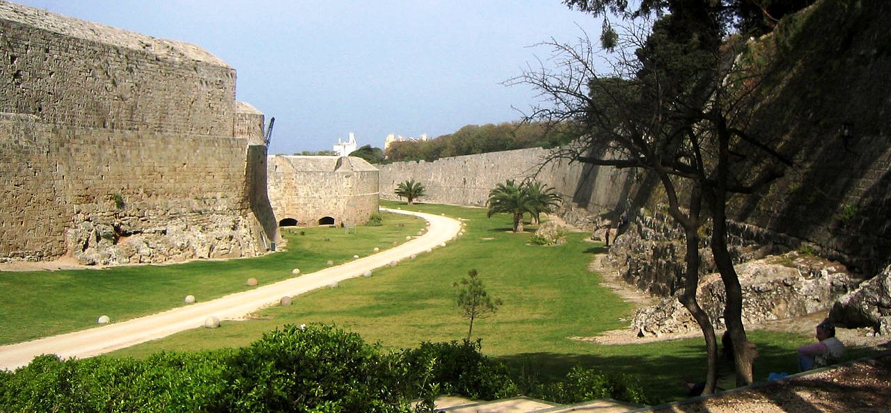 The Tower of Italy had a round bulwark built around by Grand Master Fabrizio del Carretto in 1515–17, and provided with gun ports at lowest level covering the ditch in every direction, for a total of three stacked tiers of cannon fire (two from the bulwark, one from the tower).