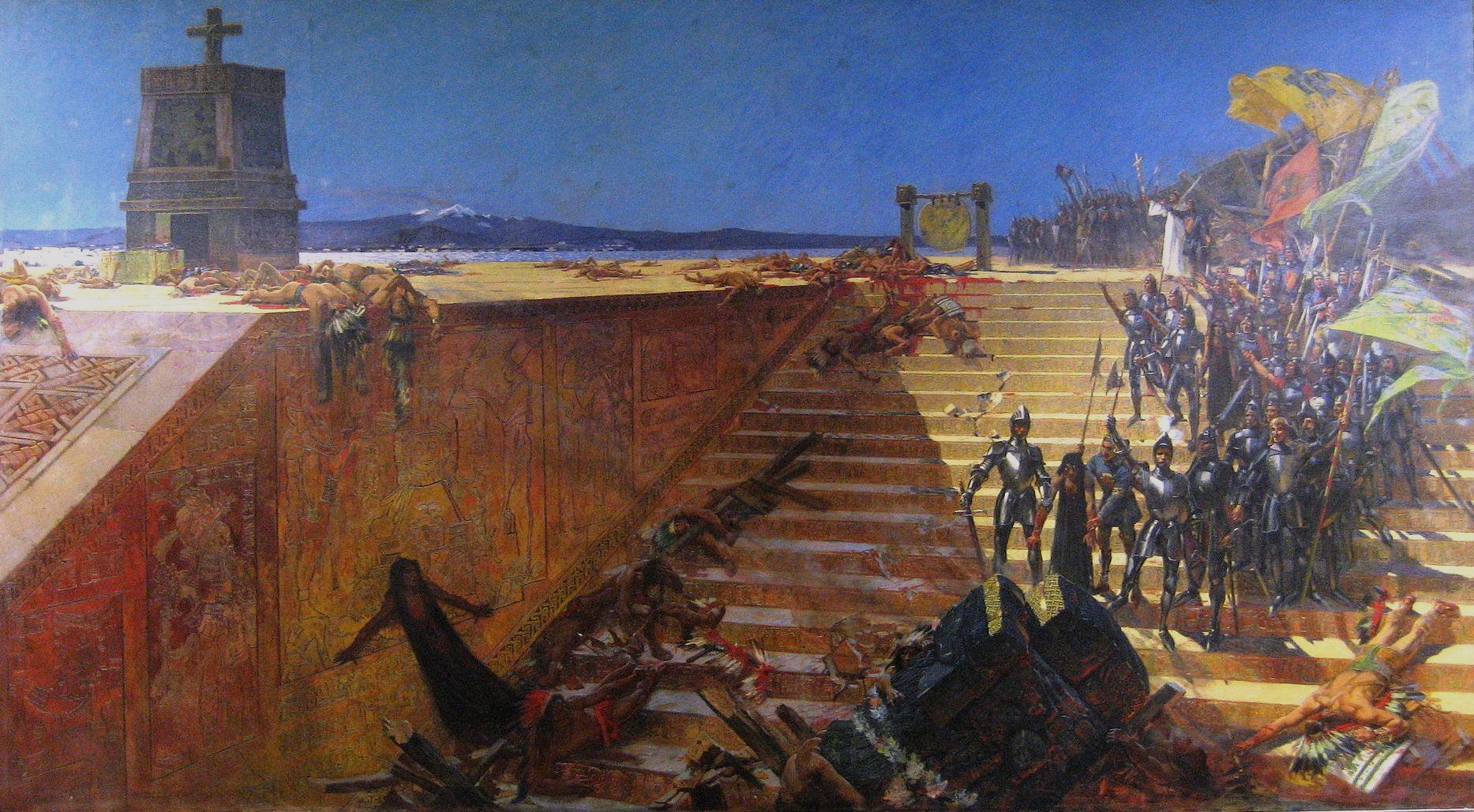 The Last Days of Tenochtitlan, Conquest of Mexico by Cortez”, a 19th-century painting by William de Leftwich Dodge.