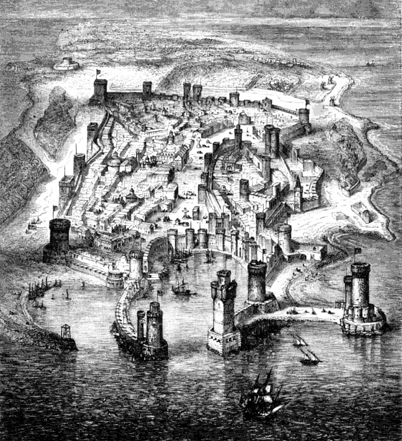 The island had little to offer except for a good harbor, and much construction would be needed to build up its defenses.  Although the capital, Medina, was initially poorly protected, the Fort Saint Angelo at the tip of the Birgu peninsula was strengthened as were the fortifications at Birgu where the order had its headquarters.  Fort St Michael was built at the neck of the Senglea Peninsula, and on the sea point of Mount Sciberras construction was started on the star-shaped Fort St Elmo.[181]