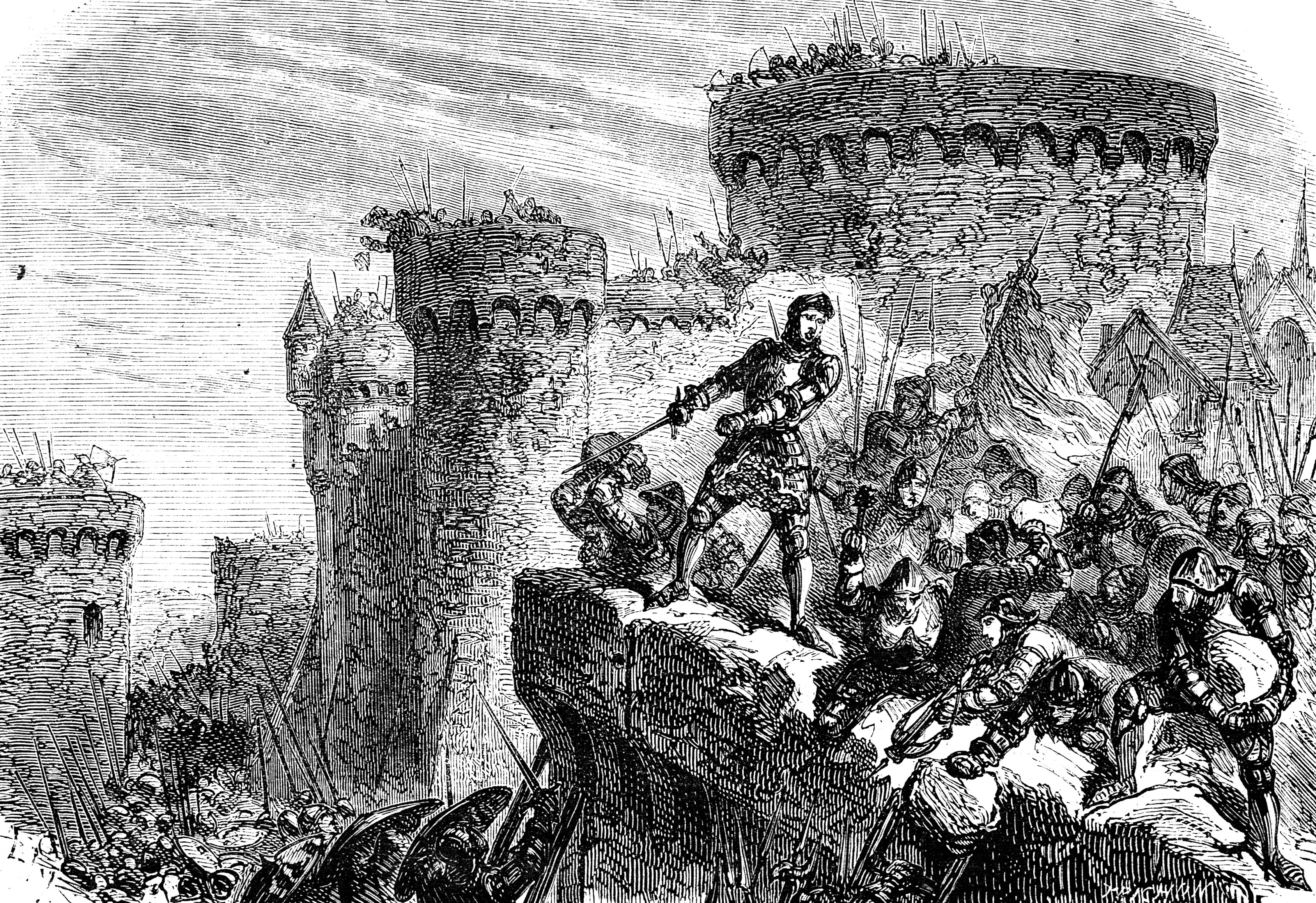Siege of Orleans, 1429, Dunois defends thecity walls against the English, 1429. Dictionnaire populaire illustréd’histoire, de géographie, de biographie, de technologie, de mythologie,d’antiquités, des beaux-arts et de littérature, rédigé et édité par Edmond Alonnier& Joseph Décembre, tome 2, Paris : Imprimerie parisienneDictionnairepopulaire illustré d’histoire, de géographie, de biographie, de technologie, demythologie, d’antiquités, des beaux-arts et de littérature, rédigé et éditépar Edmond Alonnier & Joseph Décembre, tome 2, Paris : ImprimerieParisienne Illustration)