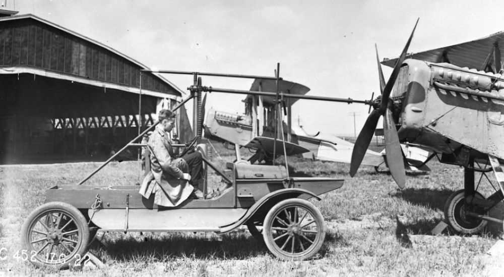 Hucks Starter in use with de Havilland D.H.4 aircraft of the Canadian Air Board, High River, Altberta, 17 June 1922.