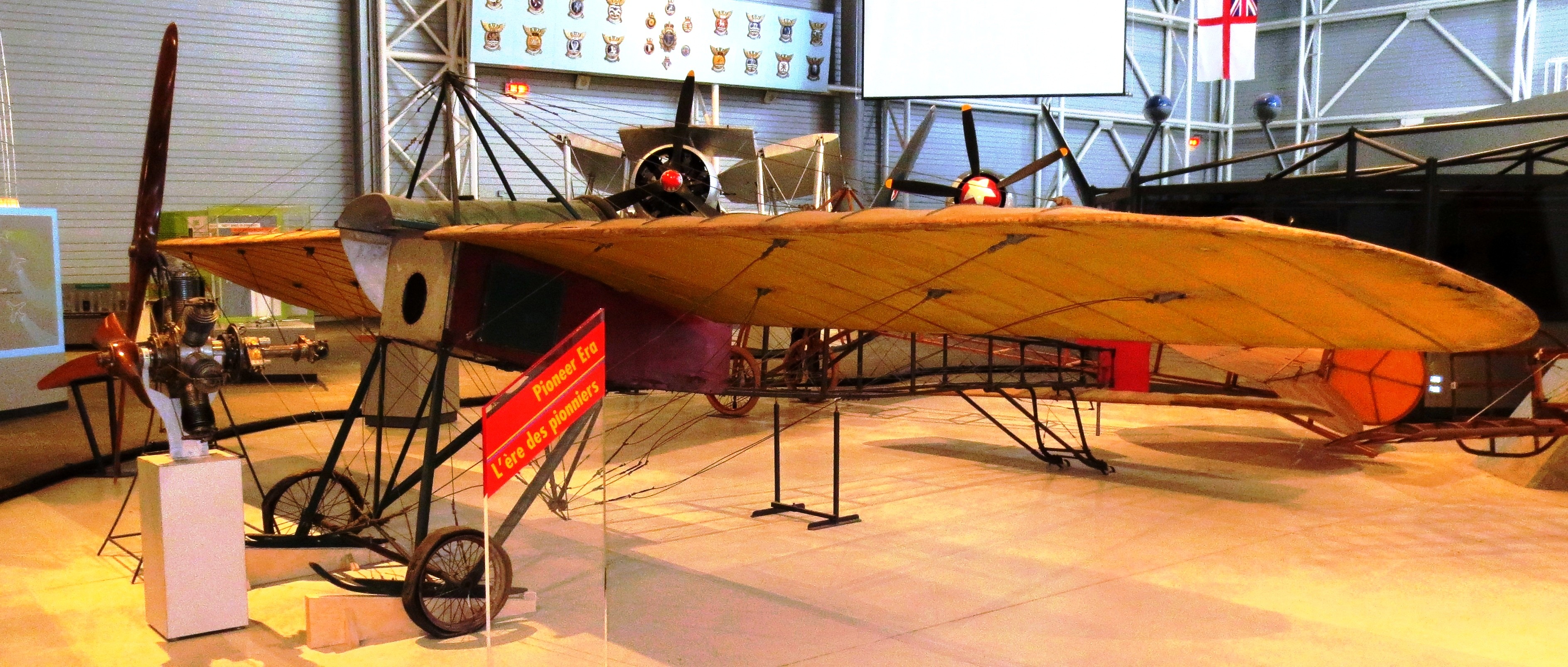 The Blériot XI is a French aircraft from the pioneer era of aviation. The first example was used by Louis Blériot to make the first flight across the English Channel in a heavier-than-air aircraft, on 25 July 1909. This is one of the most famous accomplishments of the pioneer era of aviation, and not only won Blériot a lasting place in history but also assured the future of his aircraft manufacturing business. The event caused a major reappraisal of the importance of aviation; the English newspaper The Daily Express led its story of the flight with the headline “Britain is no longer an Island.”[1]The aircraft was produced in both single- and two-seat versions, powered by several different engines, and was widely used for competition and training purposes. Military versions were bought by many countries, continuing in service until after the outbreak of the First World War in 1914. Two restored examples – one in the United Kingdom and one in the United States – of original Blériot XI aircraft are thought to be the two oldest flyable aircraft in the world. Wikipedia)