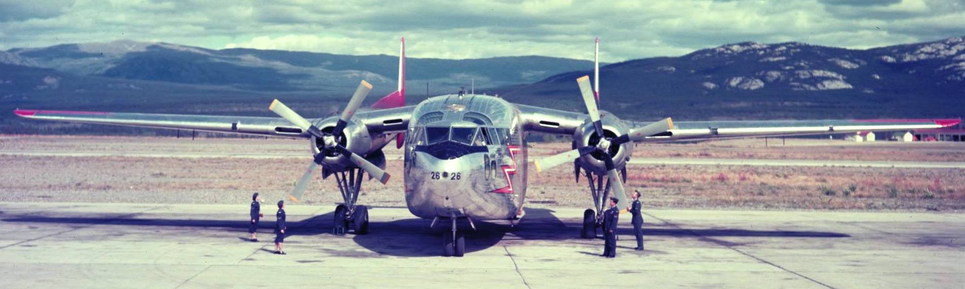Fairchild C-119 Flying Boxcar, RCAF (Serial No. 22126), possibly Whitehorse, Yukon Territory, ca 1950s.